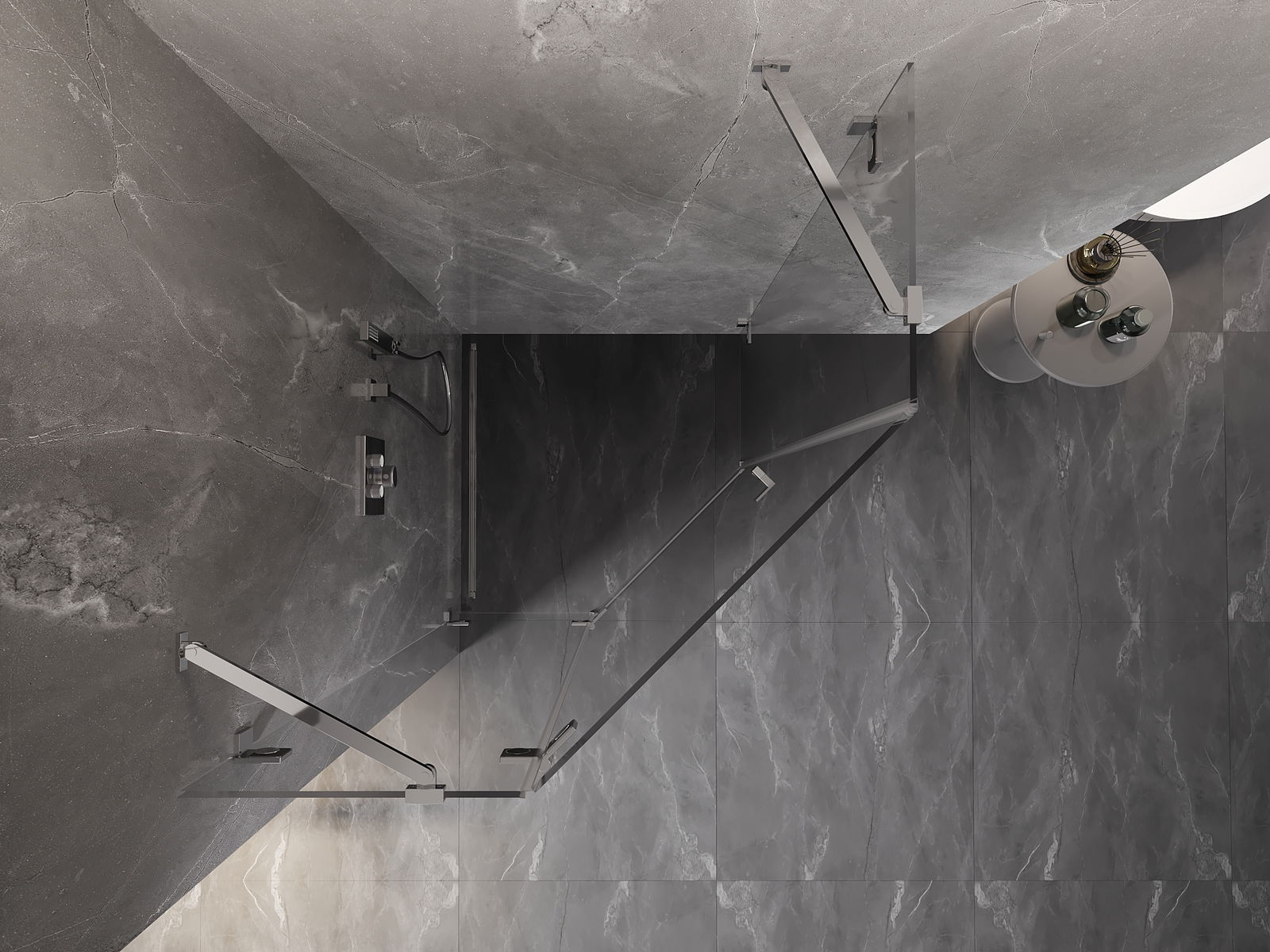 Il prodotto, a seconda delle esigenze, può essere installato sia sul piatto doccia che direttamente sul pavimento. Il metodo di installazione universale consente di adattare il prodotto a diversi tipi di bagni e configurazioni di spazio.