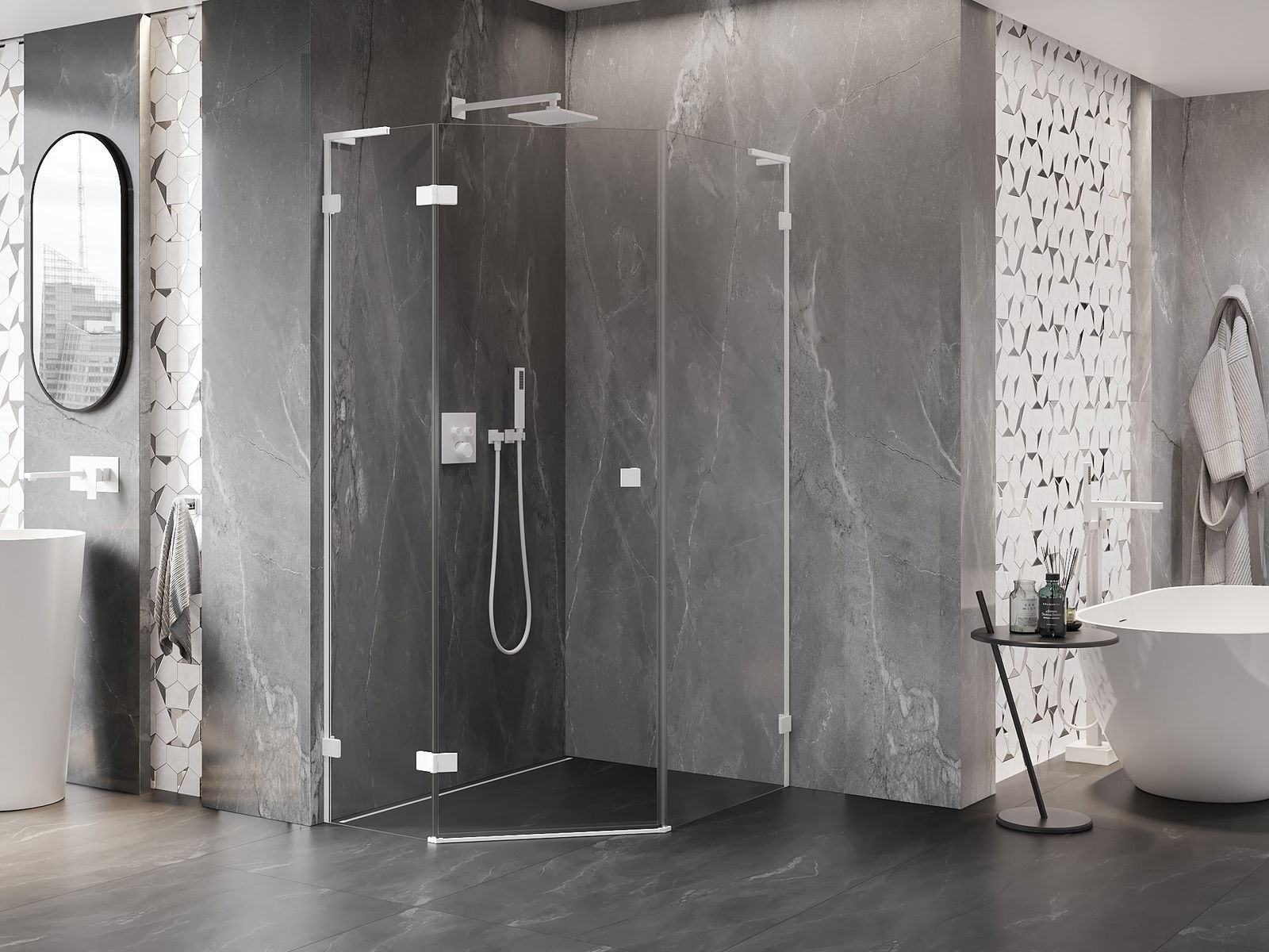 Mexen Lunar L cabina doccia pentagonale apertura sinistra 80 x 100 cm, trasparente, bianco - 831L-080L-100P-20-00-L