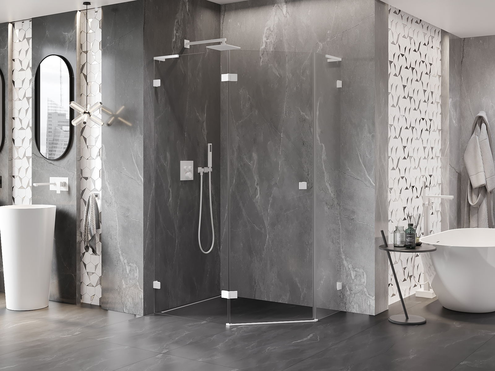 L'impugnatura pratica e comoda è realizzata in metallo durevole e resistente. La forma alla moda combinata con una finitura abbinata al colore dei profili conferisce all'insieme un aspetto moderno e elegante, enfatizzando l'estetica di ogni bagno.
