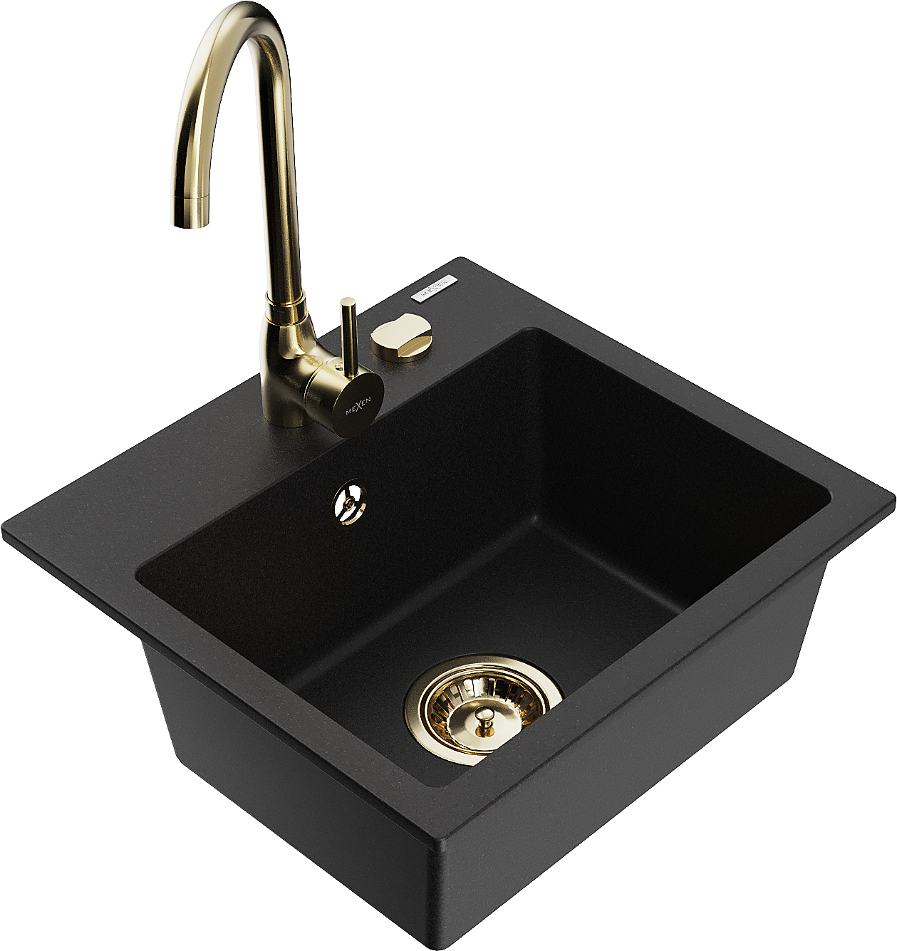 Mexen Milo lavello in granito a 1 vasca con rubinetto da cucina Telma, nero - 6505-77-670200-50