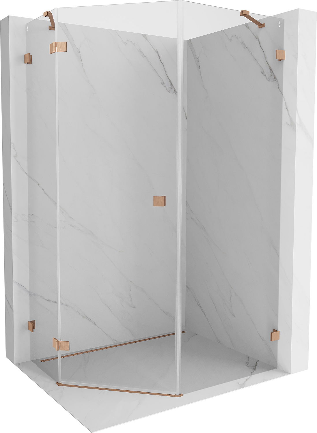 Mexen Lunar cabina doccia pentagonale battente sinistra 90 x 100 cm, trasparente, rame spazzolato - 831-090L-100P-65-00-L