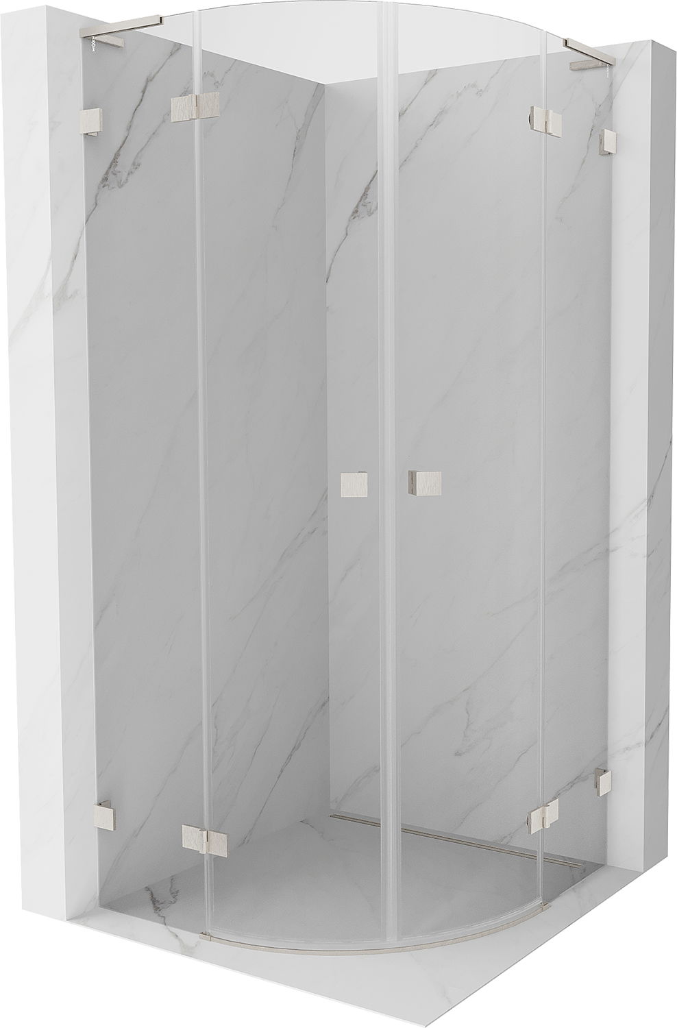 Mexen Lunar L cabina doccia semicircolare a soffietto 70 x 70 cm, trasparente, nichel spazzolato - 833L-070L-070P-97-00