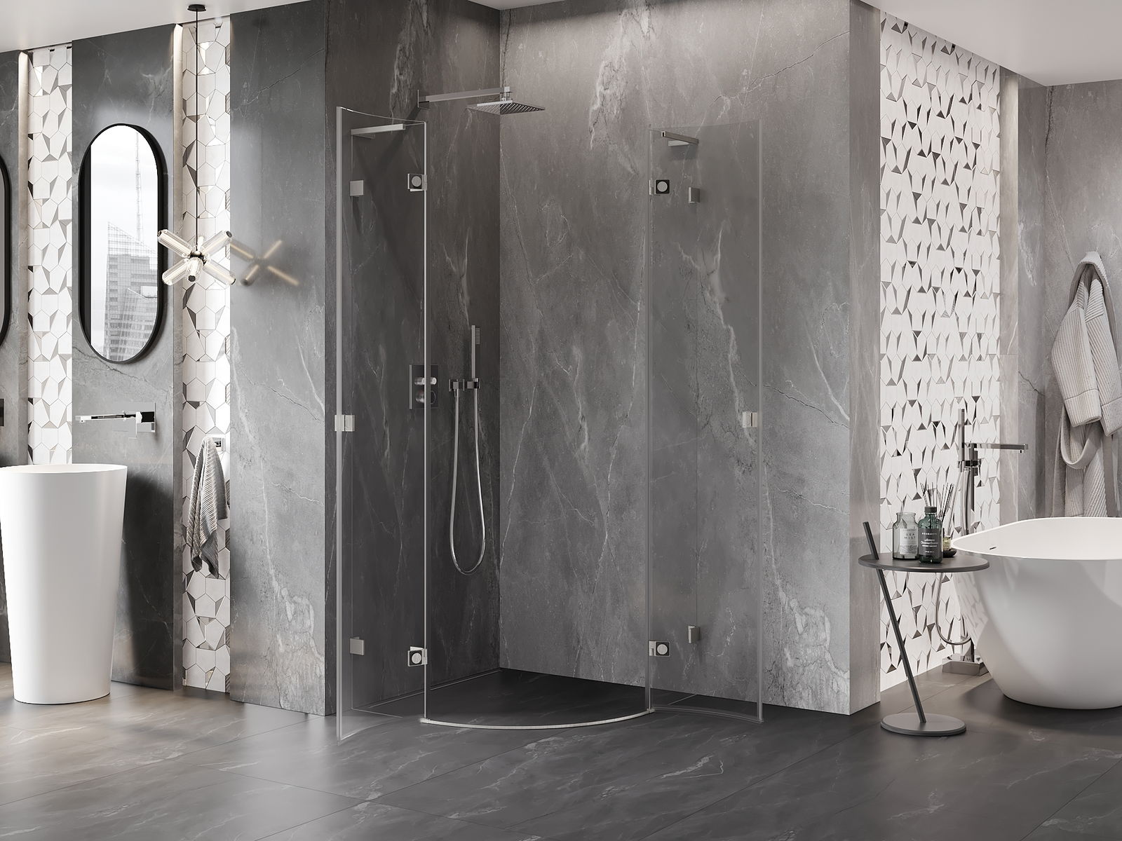L'impugnatura pratica e comoda è realizzata in metallo durevole e resistente. La forma alla moda combinata con una finitura abbinata al colore dei profili conferisce all'insieme un aspetto moderno e elegante, enfatizzando l'estetica di ogni bagno.