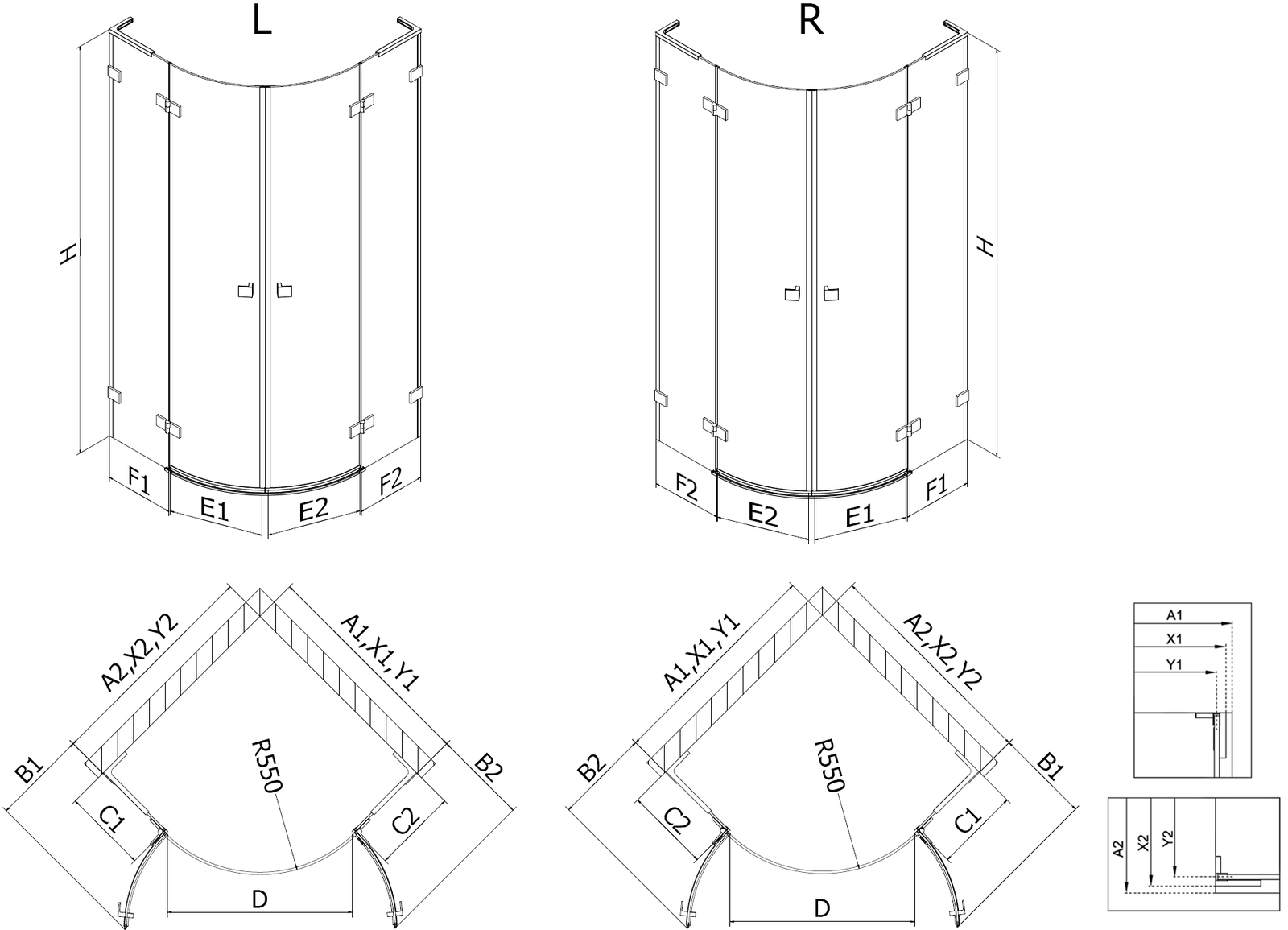 Le porte a battente consentono la massima libertà durante l'uso. Dispongono di solidi cardini realizzati in materiale durevole, che non creano difficoltà nella pulizia e consentono un facile accesso all'interno della cabina.