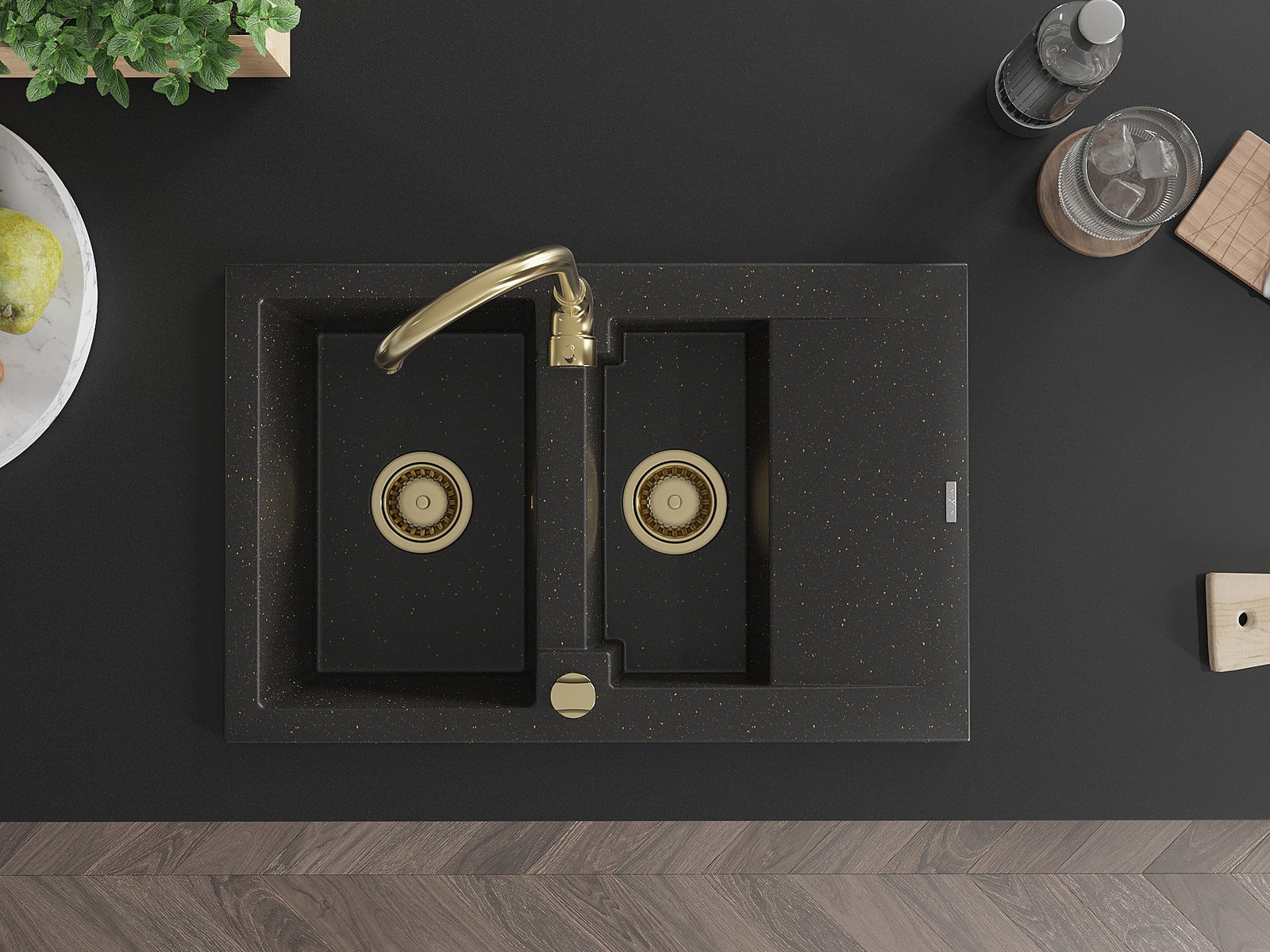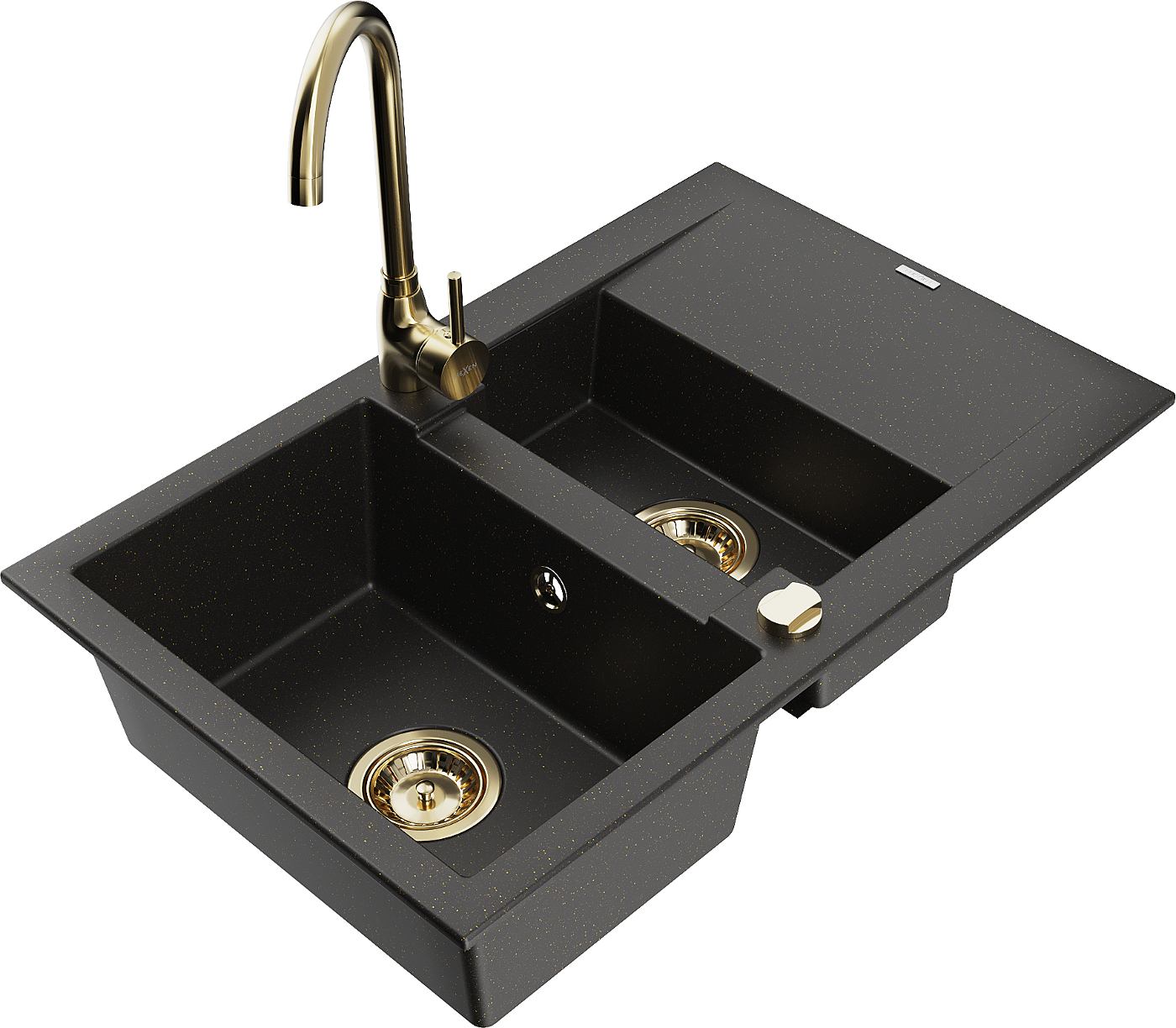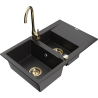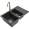 Mexen Gaspar lavello in granito 1,5 vasca con scolapiatti e rubinetto cucina Telma, nero/oro - 6507-75-670200-50