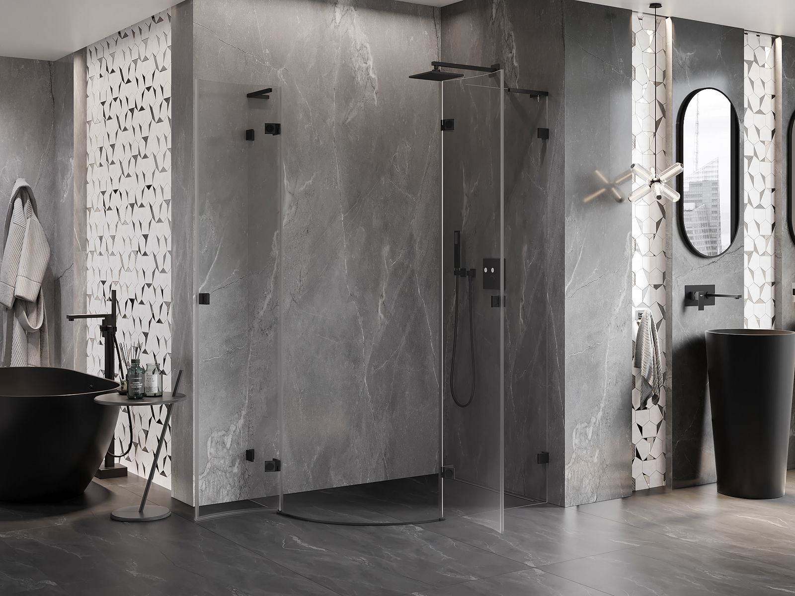 L'impugnatura pratica e comoda è realizzata in metallo durevole e resistente. La forma alla moda combinata con una finitura abbinata al colore dei profili conferisce all'insieme un aspetto moderno e elegante, enfatizzando l'estetica di ogni bagno.