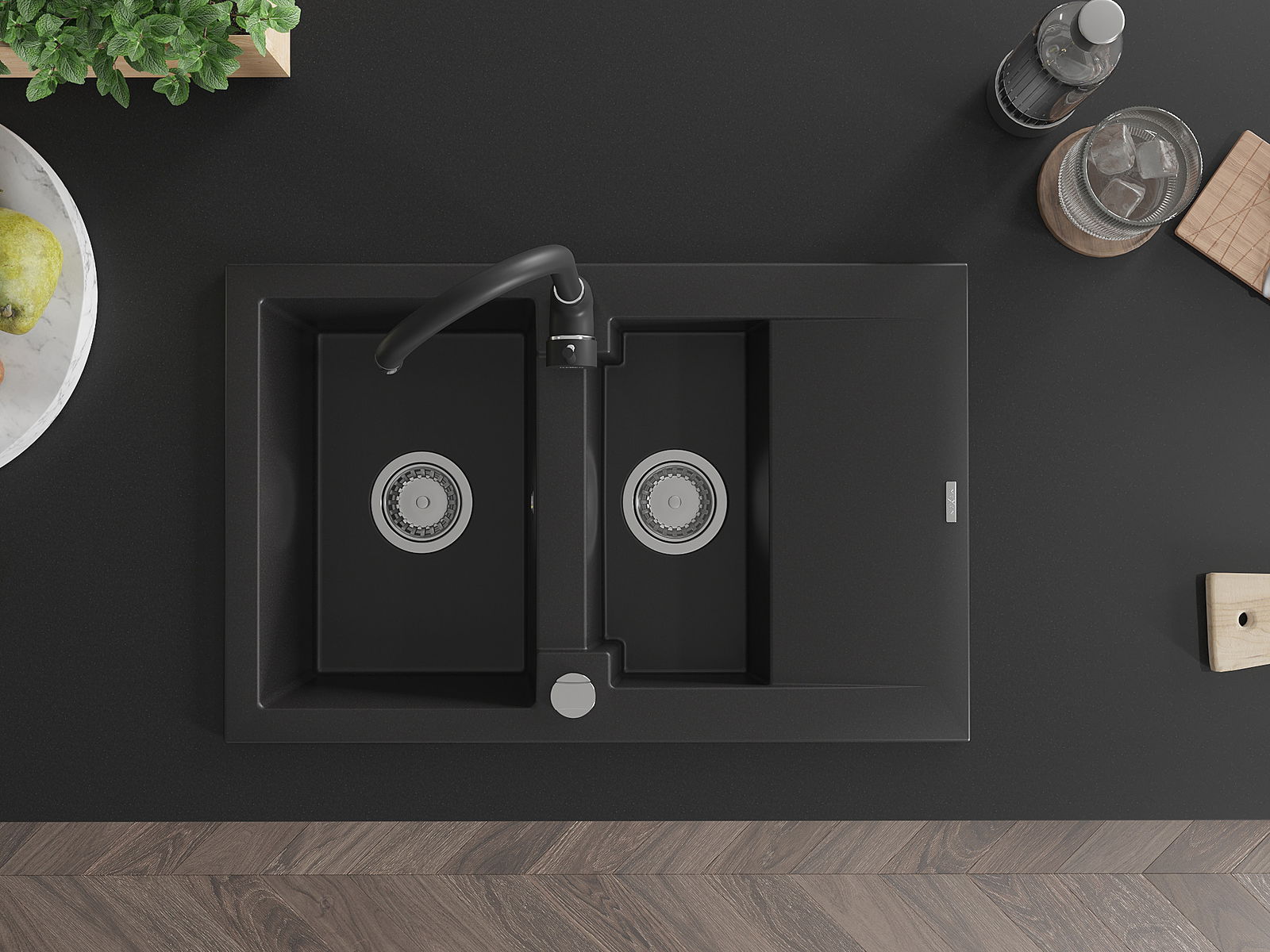 Mexen Gaspar lavello in granito 1,5 vasca con sgocciolatoio e rubinetto Telma, nero - 6507-77-670200-70
