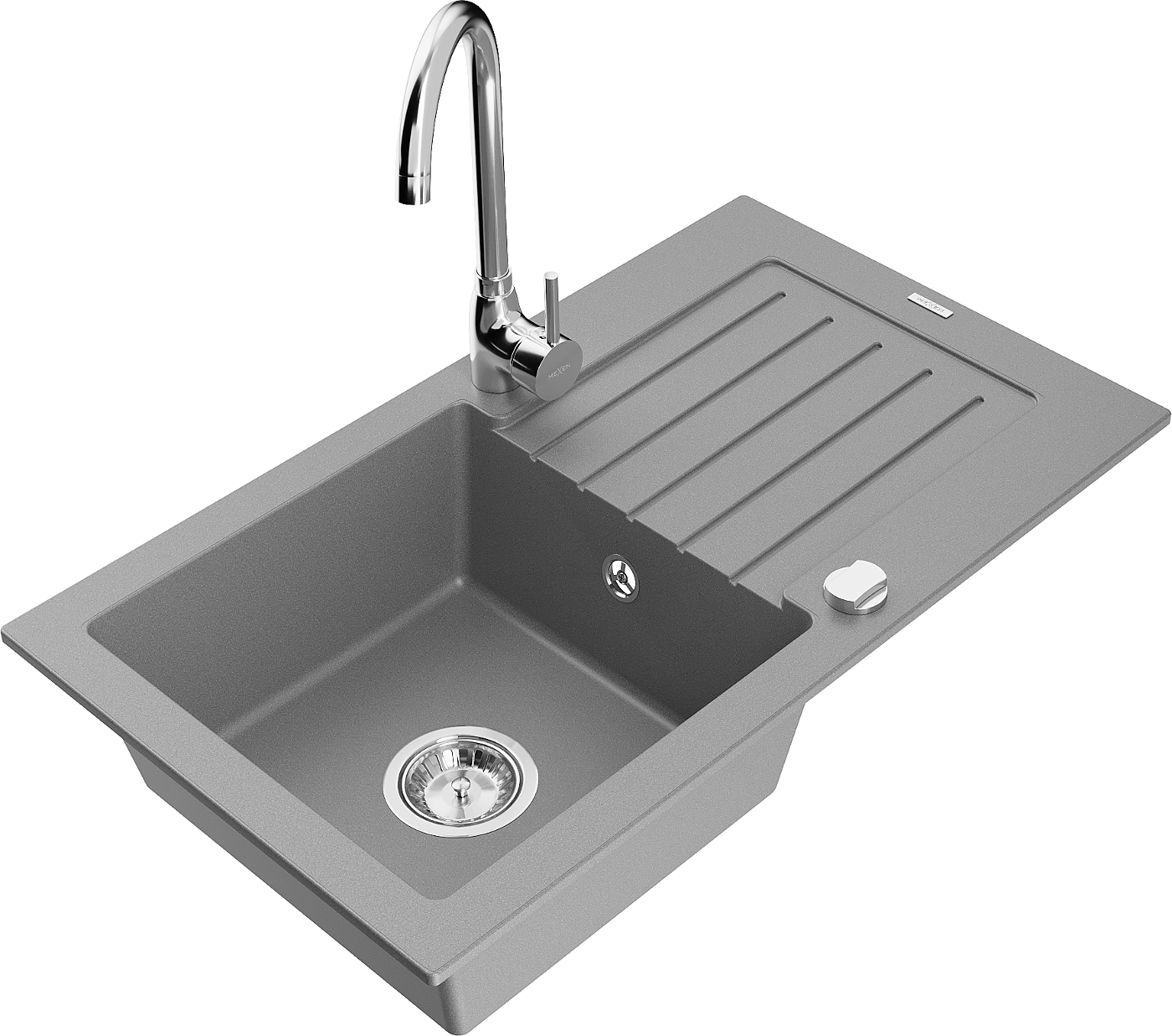 Mexen Pablo lavello in granito 1-vasca con scolapiatti e rubinetto da cucina Telma, grigio - 6510-71-670200-00