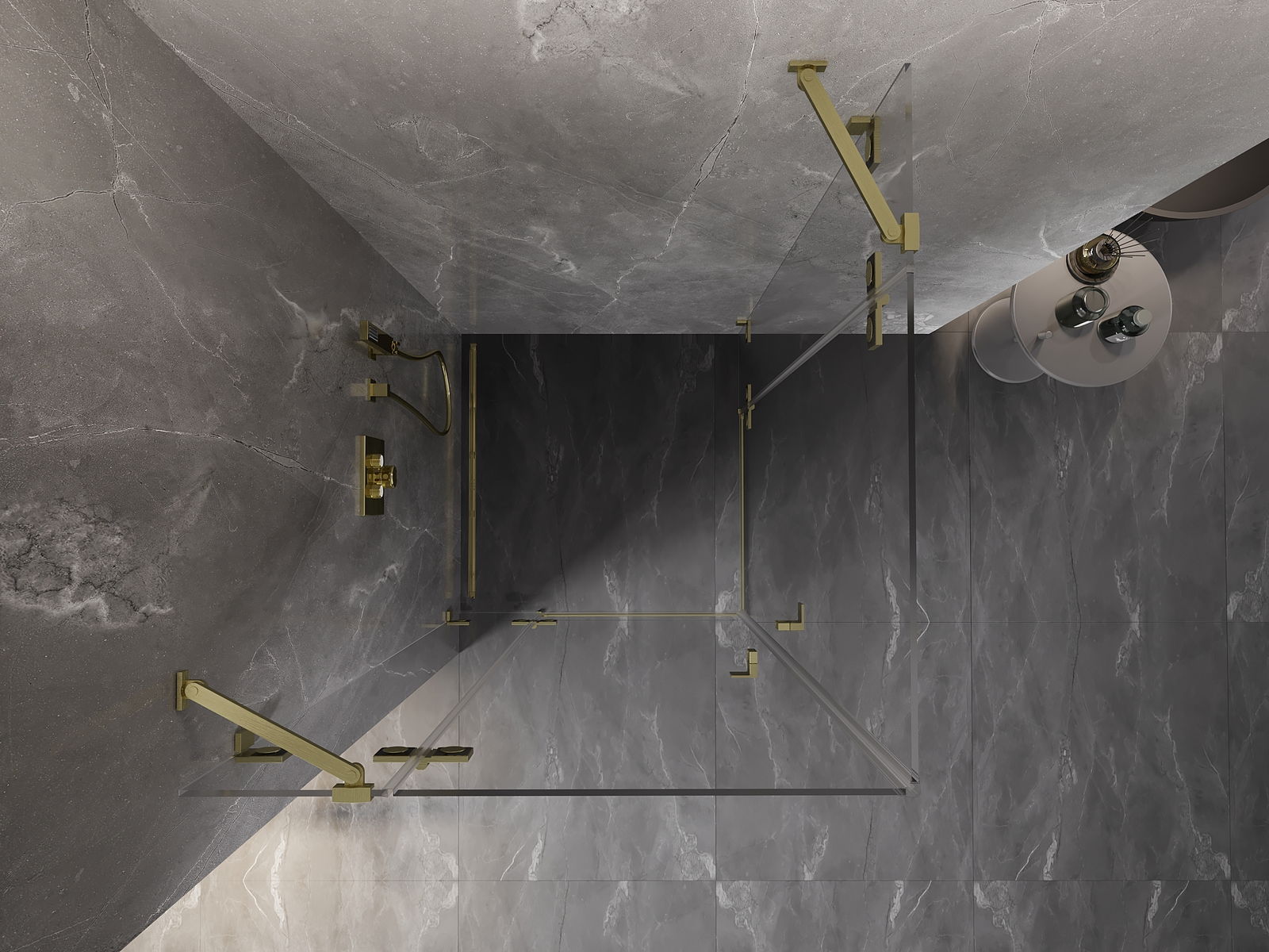 Mexen Lunar Duo cabina doccia battente 90 x 90 cm, trasparente, oro spazzolato - 834-090L-090P-55-00