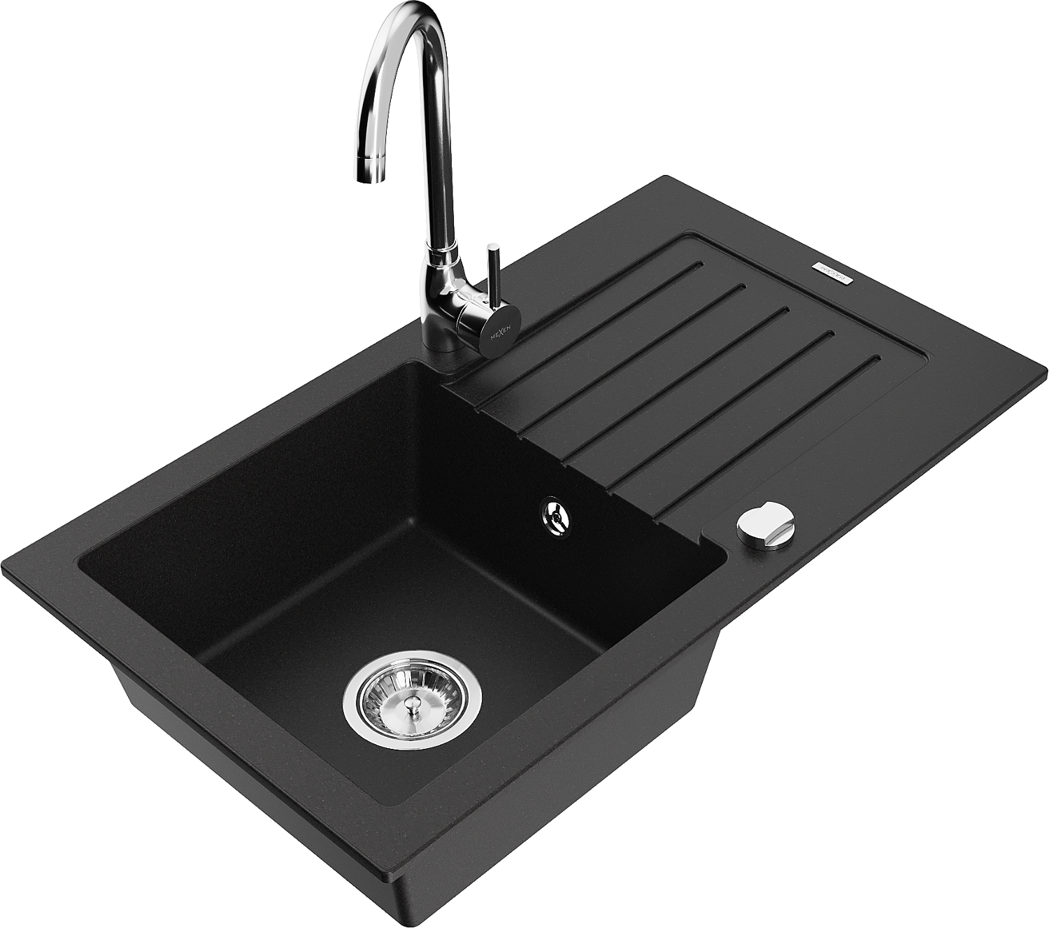 Mexen Pablo lavello in granito a 1 vasca con sgocciolatoio e rubinetto da cucina Telma, nero - 6510-77-670200-00