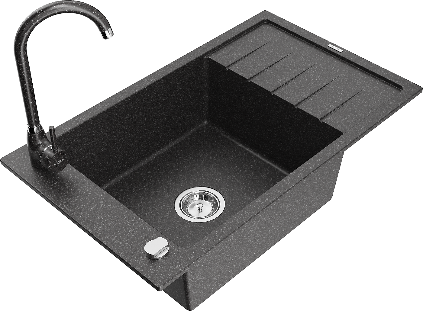 Mexen Elias lavello da cucina in granito a 1 vasca con scolapiatti e rubinetto Telma, nero maculato - 6511-76-670200-76