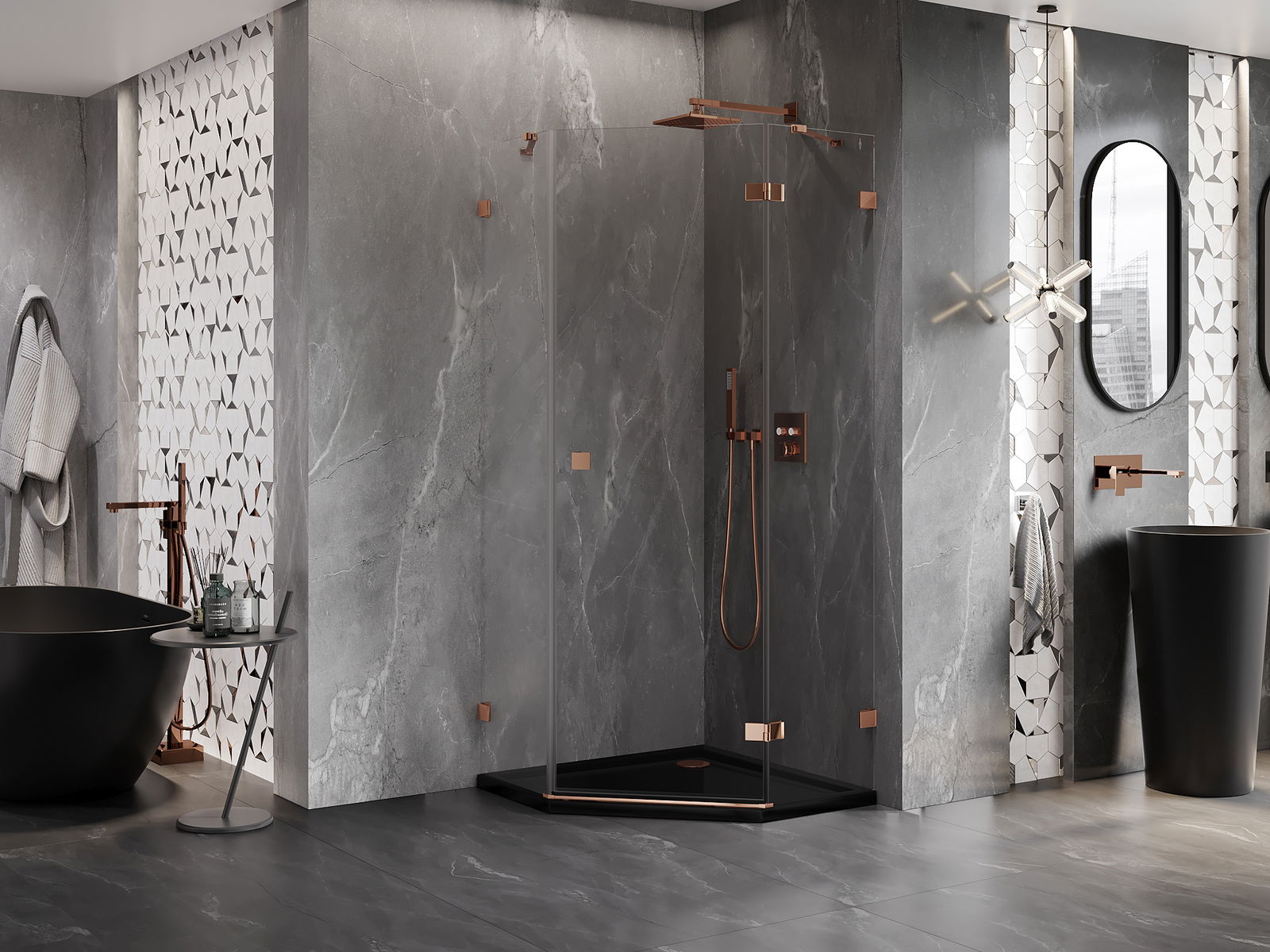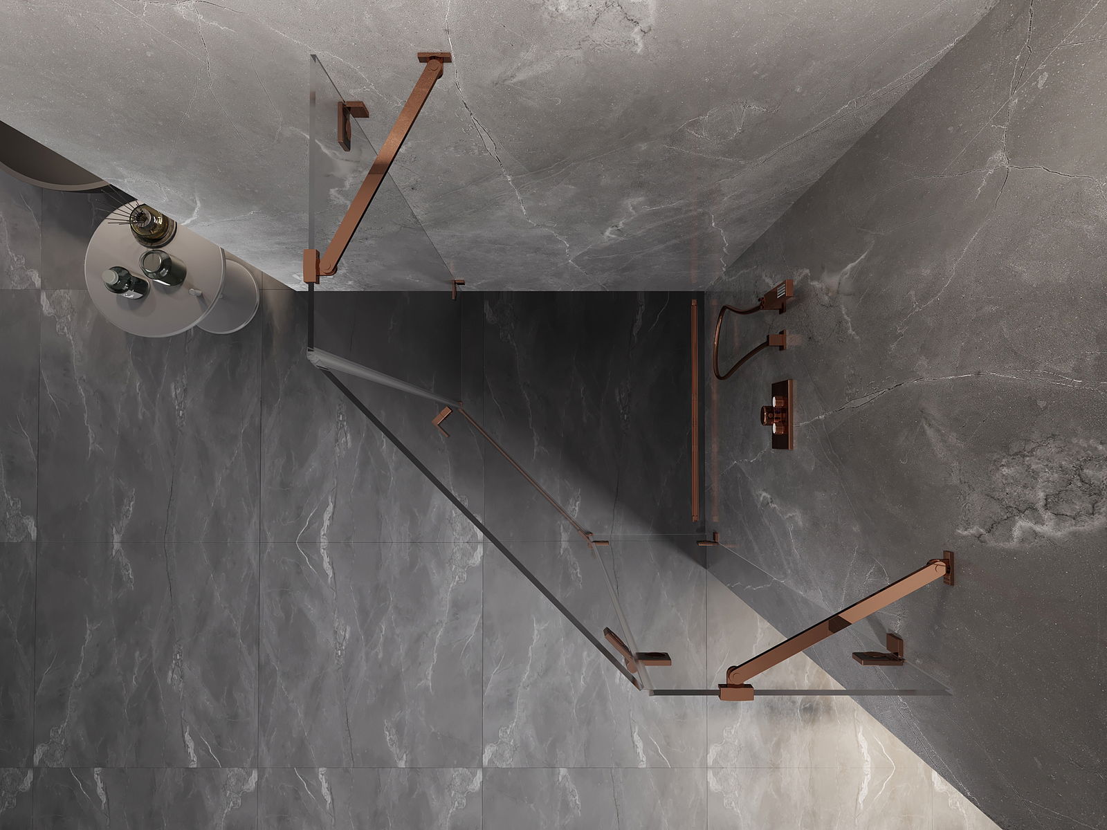 Mexen Lunar cabina doccia pentagonale basculante destra 90 x 90 cm, trasparente, oro rosa - 831-090P-090L-60-00-P
