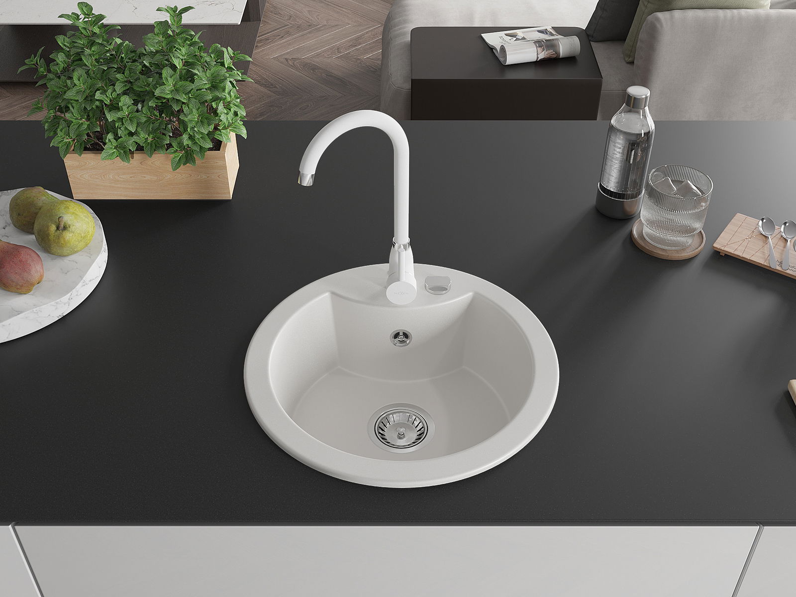 Mexen Diego lavello da cucina in granito a 1 vasca con rubinetto Telma, bianco - 6512-20-670200-20