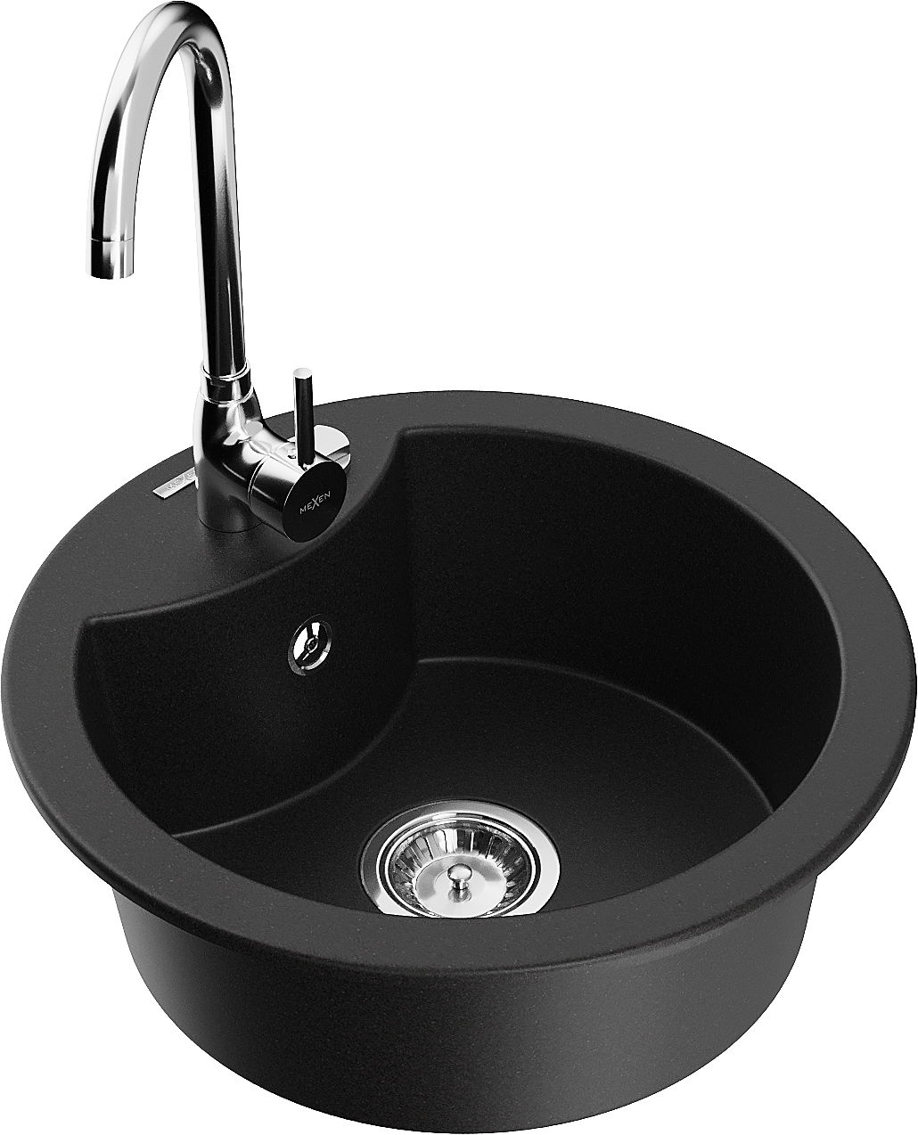 Mexen Diego lavello in granito a 1 vasca con rubinetto da cucina Telma, nero - 6512-77-670200-00