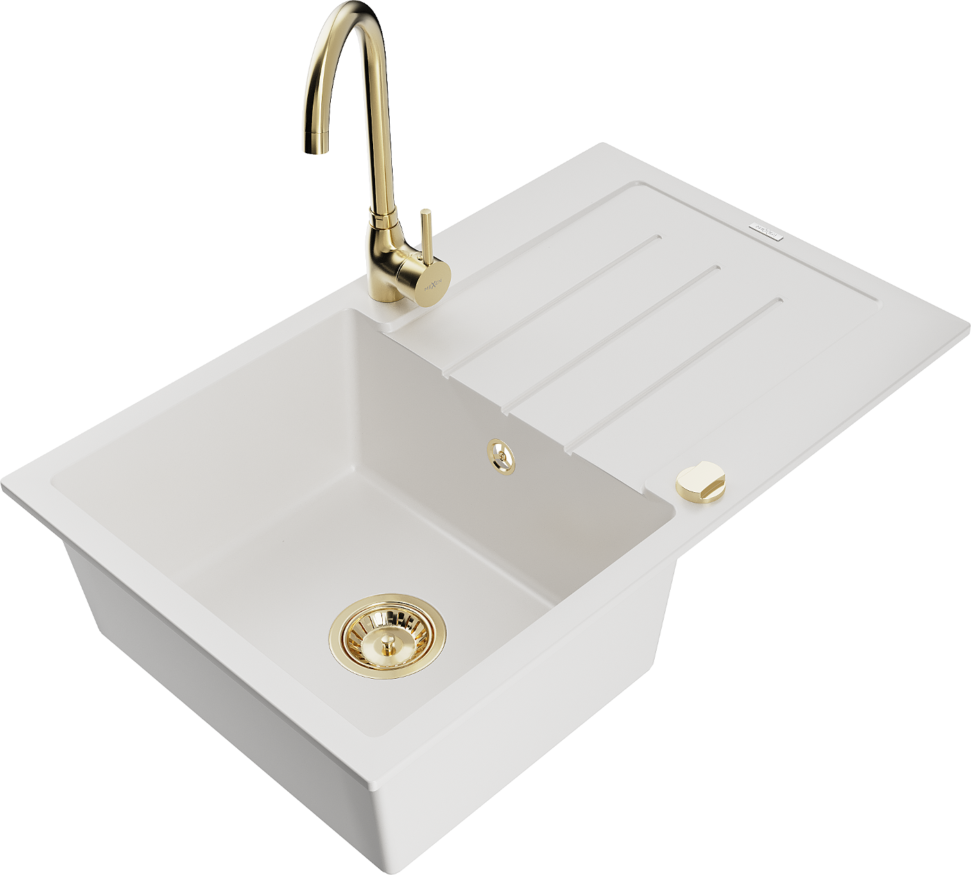 Mexen Bruno lavello in granito a 1 vasca con scolapiatti e rubinetto da cucina Telma, bianco - 6513-20-670200-50