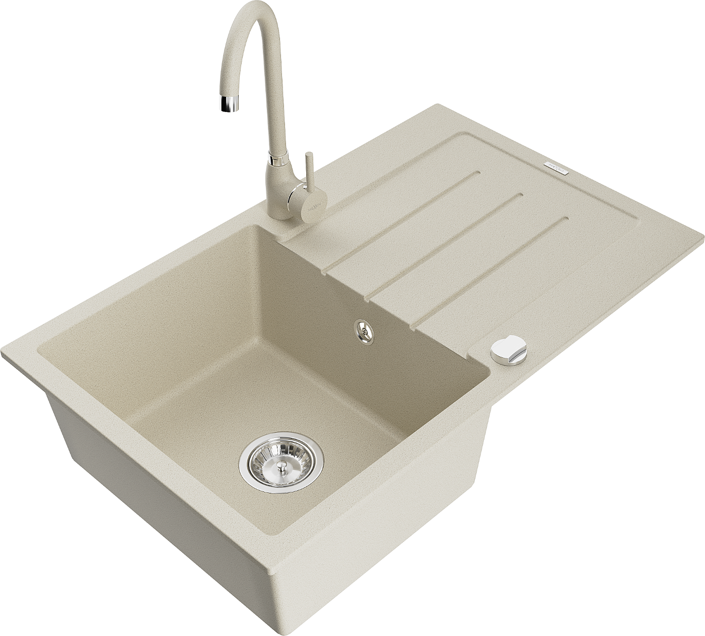 Mexen Bruno lavello in granito a 1 vasca con scolapiatti e rubinetto da cucina Telma, beige - 6513-69-670200-69