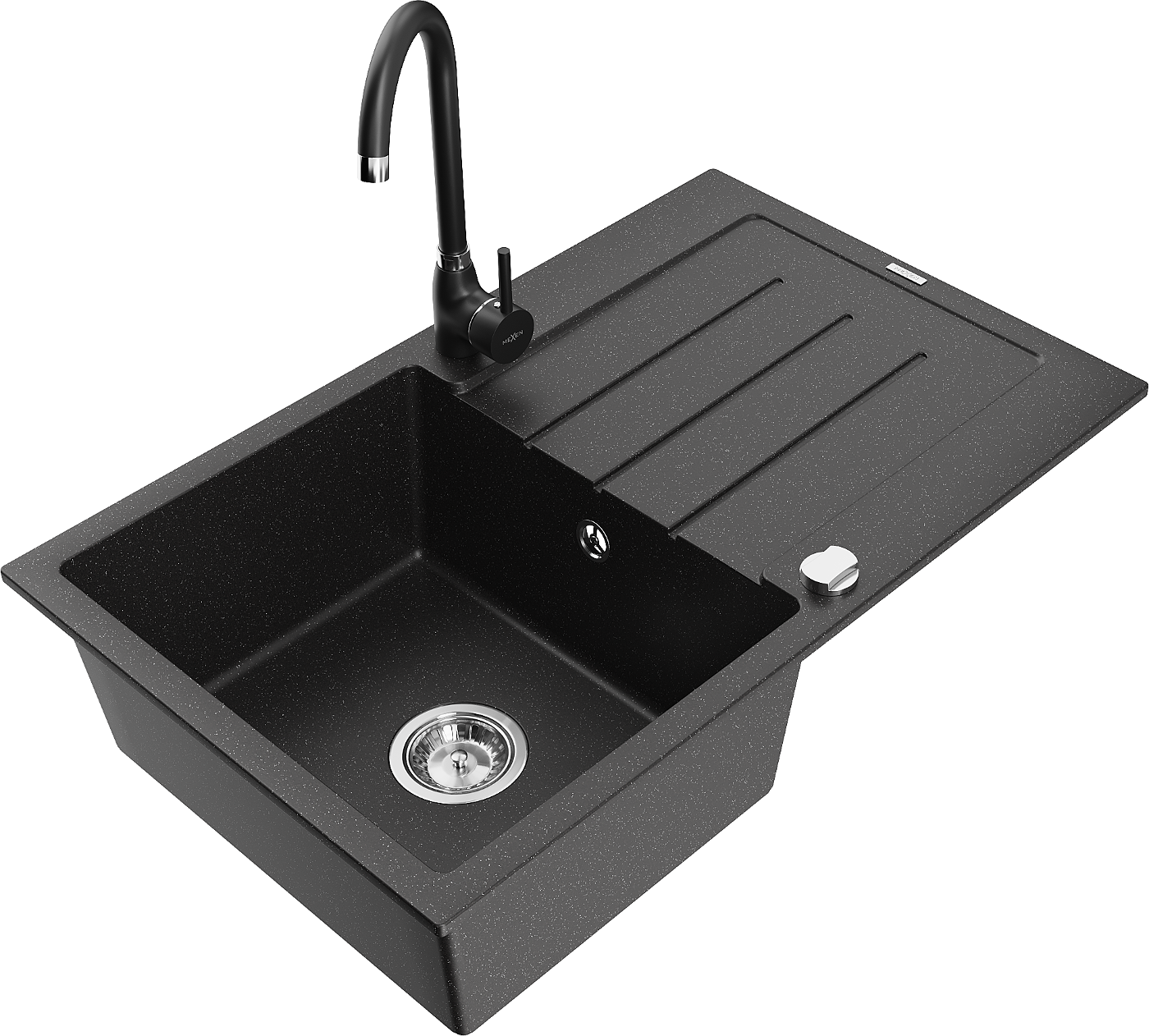 Mexen Bruno lavello in granito a 1 vasca con scolapiatti e rubinetto da cucina Telma, nero/argento - 6513-73-670200-70