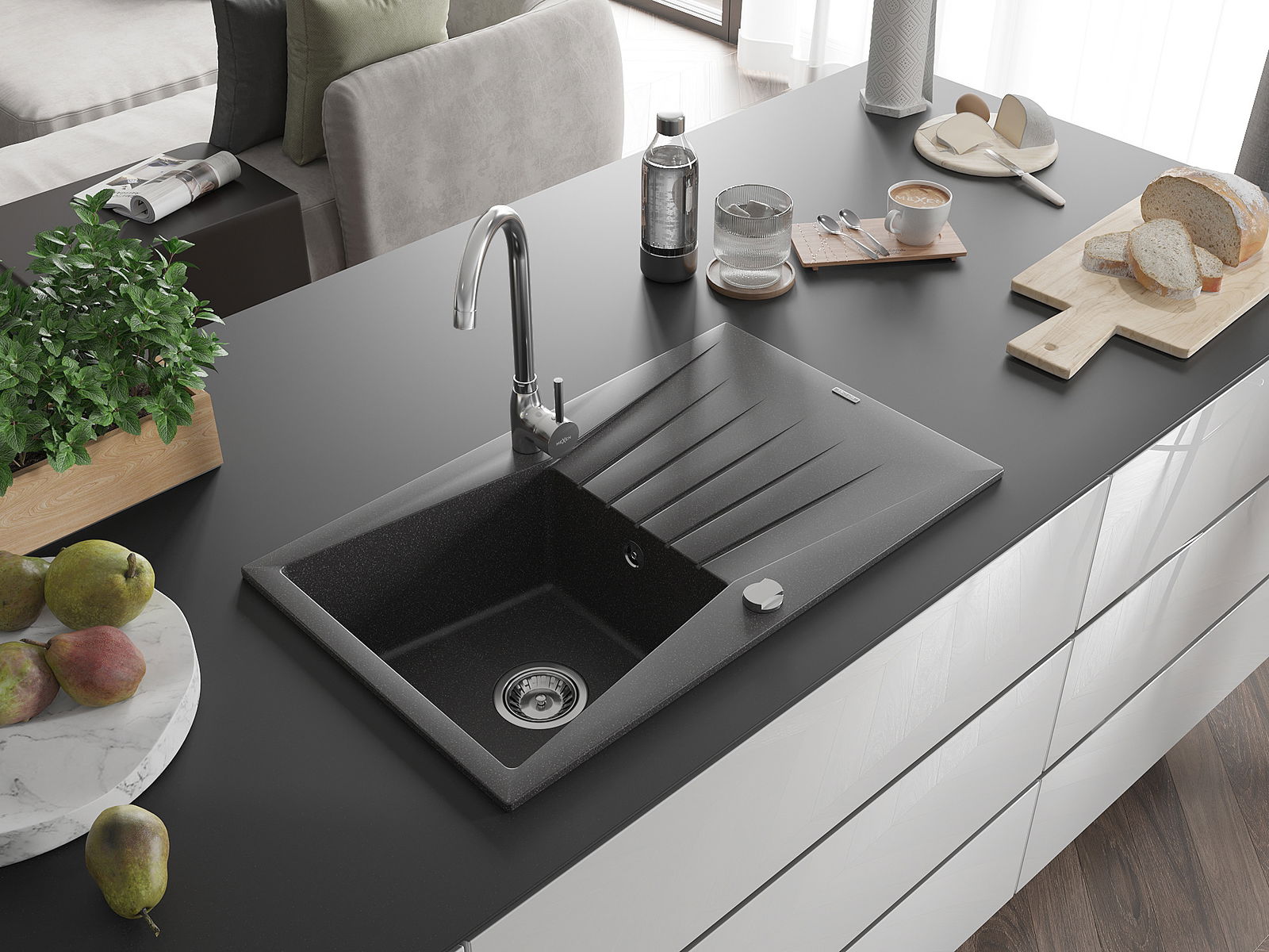 La scelta di un lavello con sgocciolatoio è una soluzione pratica che consente di riporre piatti, verdure e frutta lavati. Lo sgocciolatoio facilita la cucina quotidiana e aiuta a mantenere l'ordine in cucina.