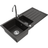 Mexen Andres lavello in granito a 1,5 vasche con scolapiatti e rubinetto cucina Telma, nero maculato - 6515-76-670200-76