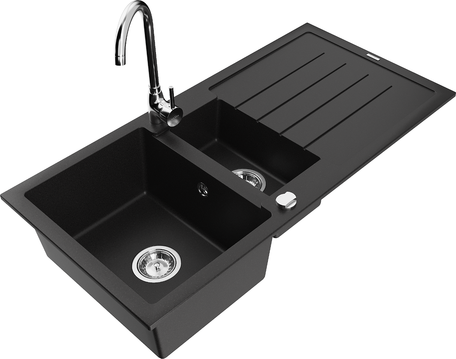 Mexen Andres lavello in granito 1,5 vasca con scolapiatti e rubinetto da cucina Telma, nero - 6515-77-670200-00