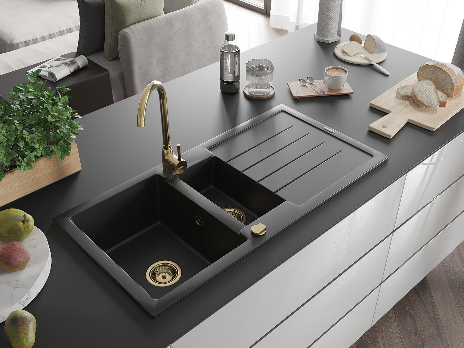 La scelta di un lavello con sgocciolatoio è una soluzione pratica che consente di riporre piatti, verdure e frutta lavati. Lo sgocciolatoio facilita la cucina quotidiana e aiuta a mantenere l'ordine in cucina.
