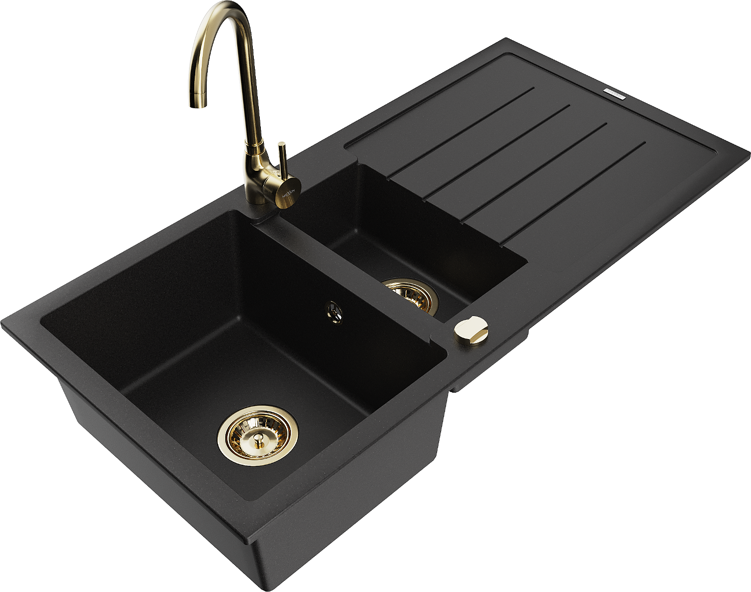 Mexen Andres lavello in granito 1,5 vasche con gocciolatoio e miscelatore da cucina Telma, nero - 6515-77-670200-50