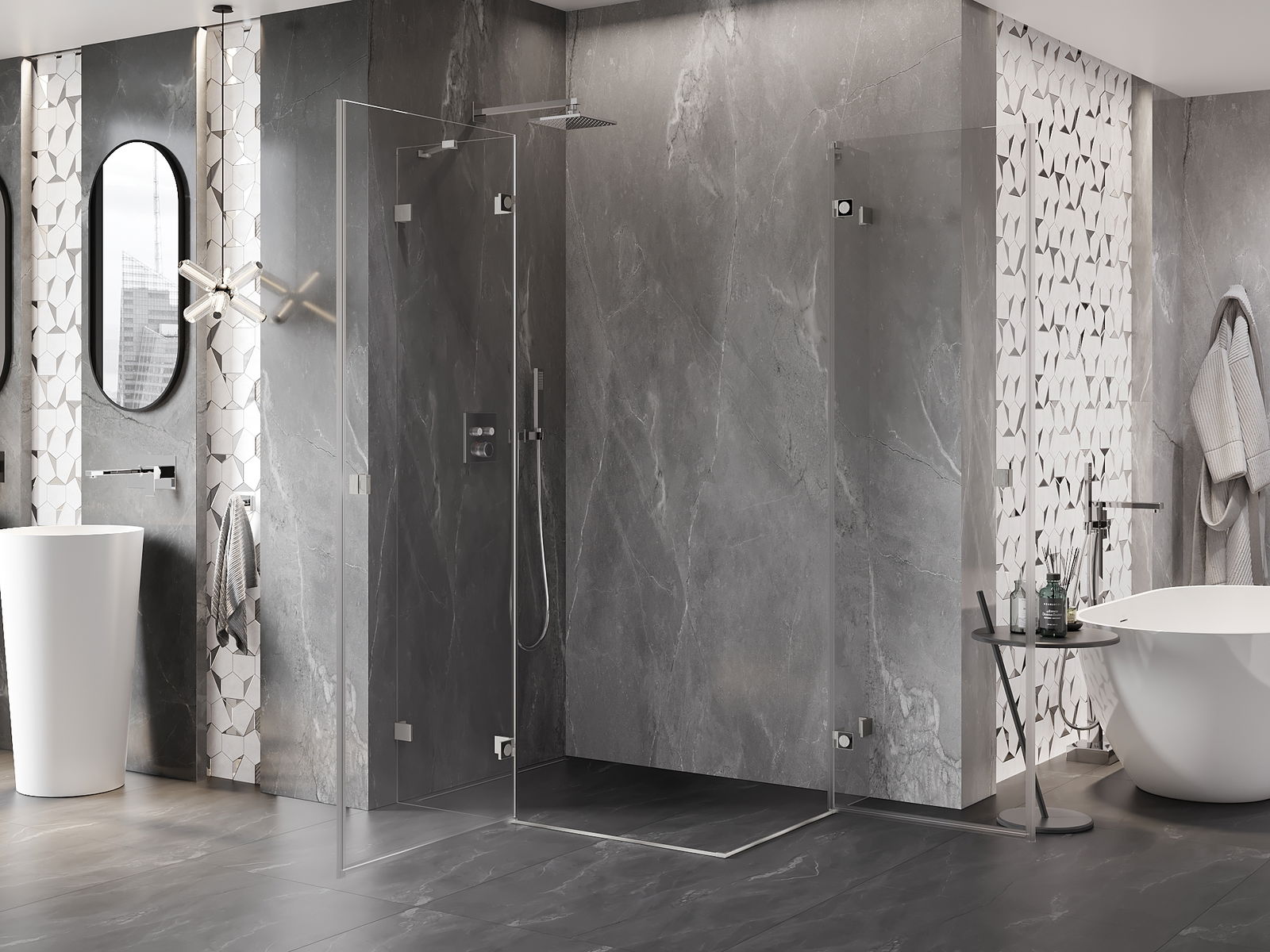 Il prodotto, a seconda delle esigenze, può essere installato sia sul piatto doccia che direttamente sul pavimento. Il metodo di installazione universale consente di adattare il prodotto a diversi tipi di bagni e configurazioni di spazio.