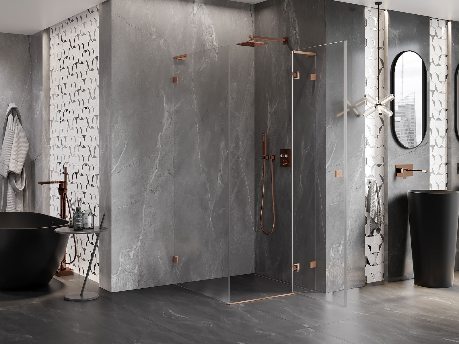 L'impugnatura pratica e comoda è realizzata in metallo durevole e resistente. La forma alla moda combinata con una finitura abbinata al colore dei profili conferisce all'insieme un aspetto moderno e elegante, enfatizzando l'estetica di ogni bagno.