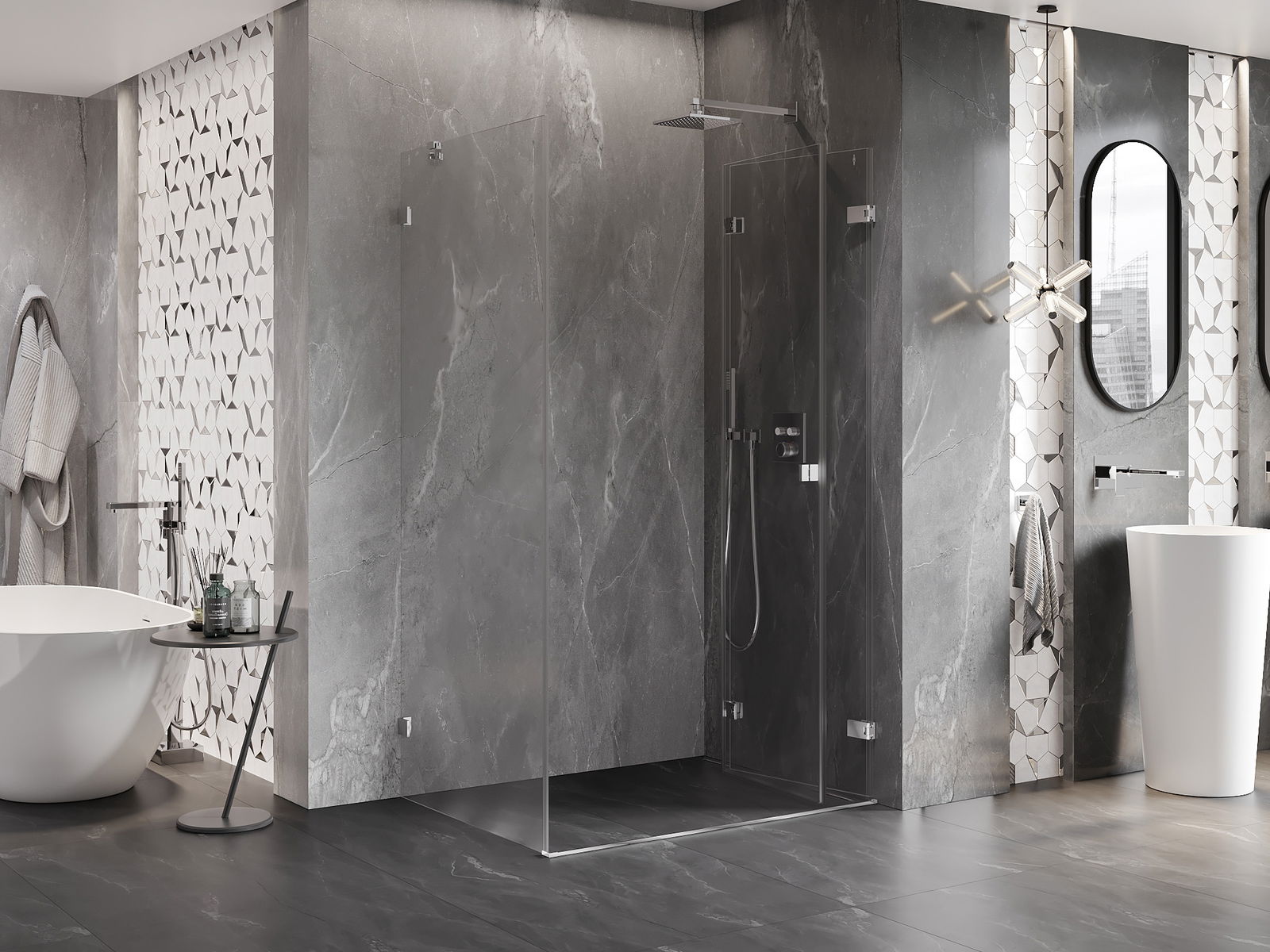 La possibilità di piegare le porte, sia verso l'esterno che verso l'interno, consente di ottenere più spazio quando la doccia non viene utilizzata. È una soluzione ideale per i bagni più piccoli, che sfrutta al massimo lo spazio disponibile.