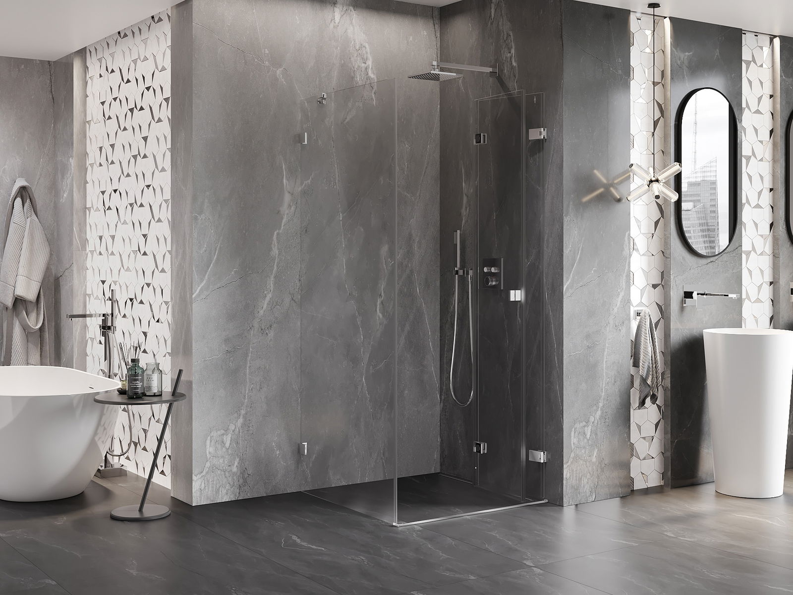 La possibilità di piegare le porte, sia verso l'esterno che verso l'interno, consente di ottenere più spazio quando la doccia non viene utilizzata. È una soluzione ideale per i bagni più piccoli, che sfrutta al massimo lo spazio disponibile.