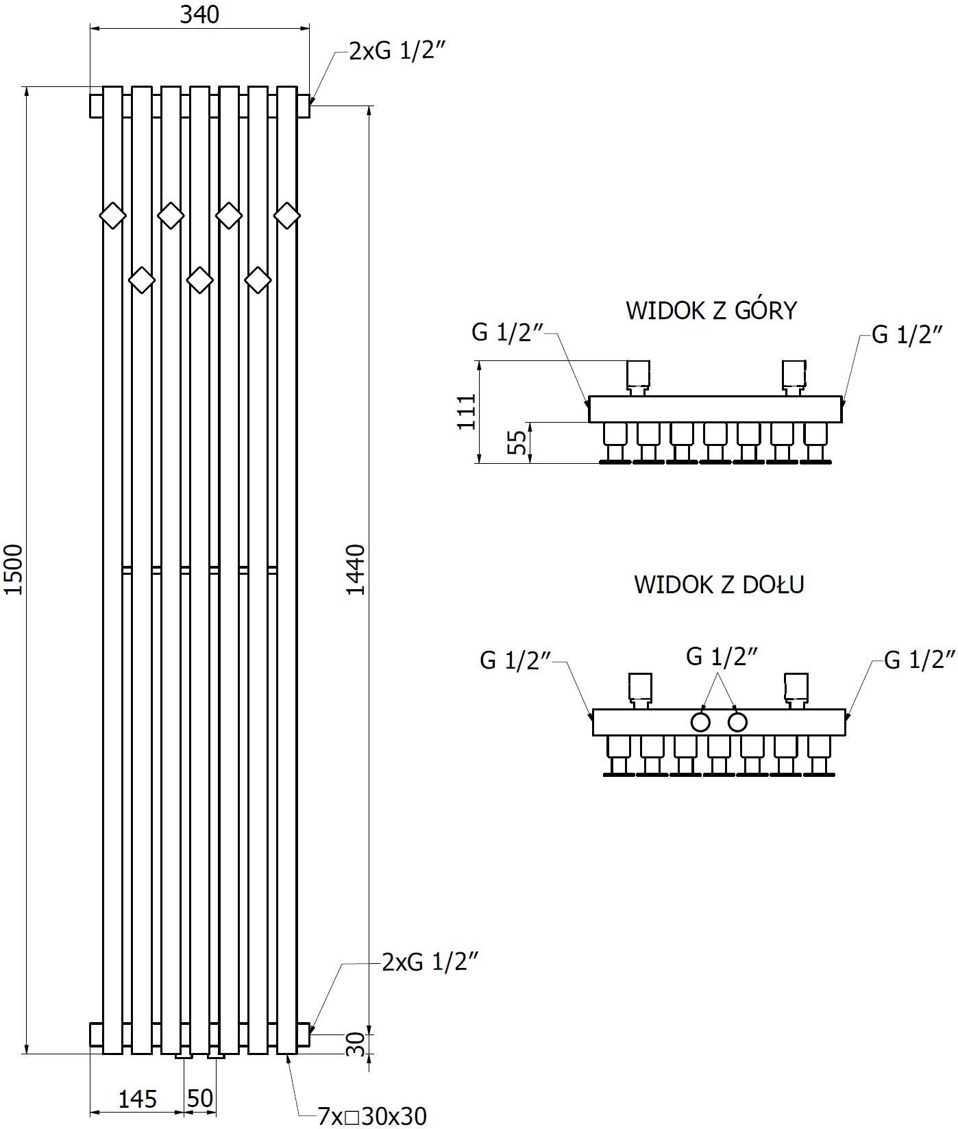 - 4xG ½″ dalla parte superiore e inferiore sul lato destro o sinistro