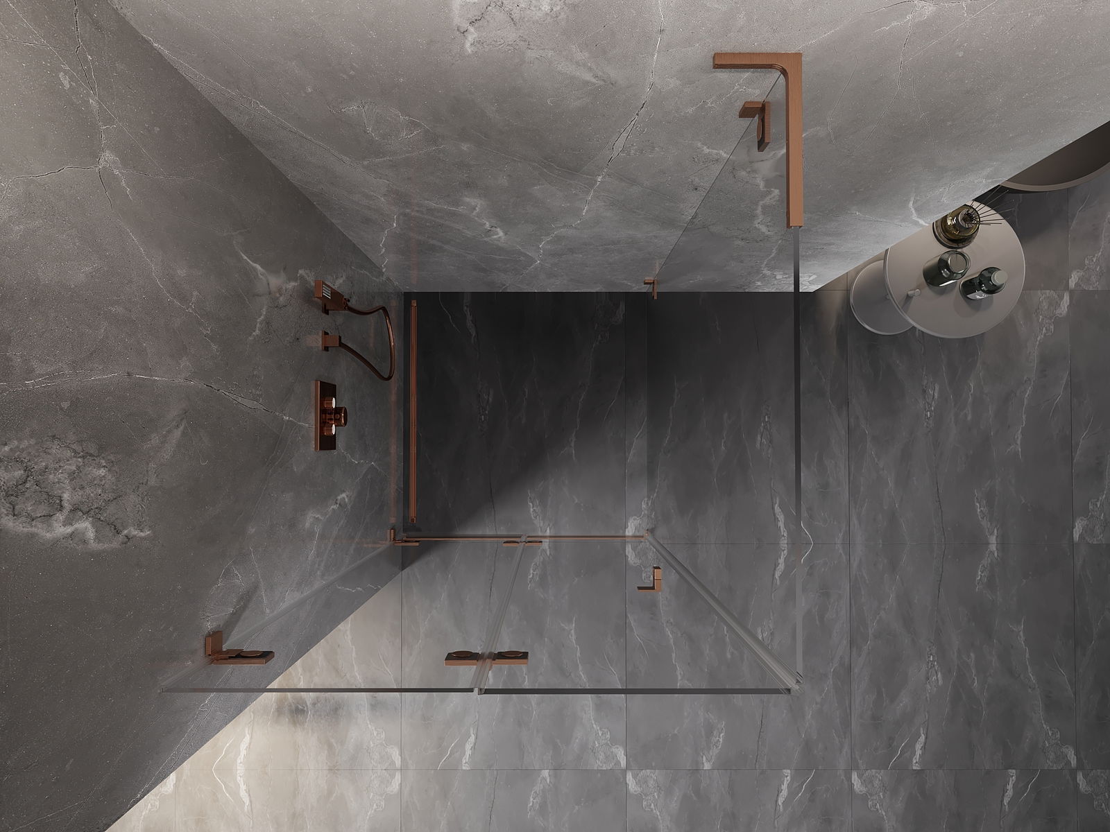 Mexen Lunar-F L cabina doccia pieghevole sinistra 70 x 70 cm, trasparente, rame spazzolato - 836L-070-070-65-00-L