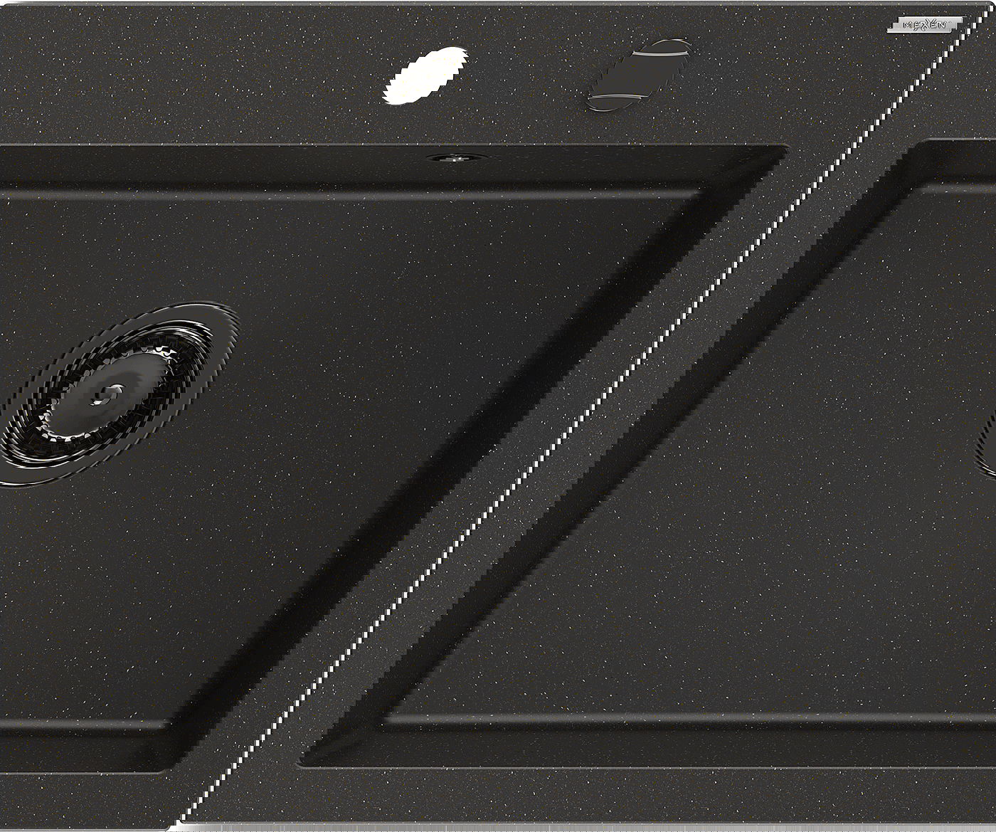 Mexen Elix lavello da cucina in granito 1-vasca 600 x 500 mm, nero/oro metallico, sifone nero - 6525601005-75-B
