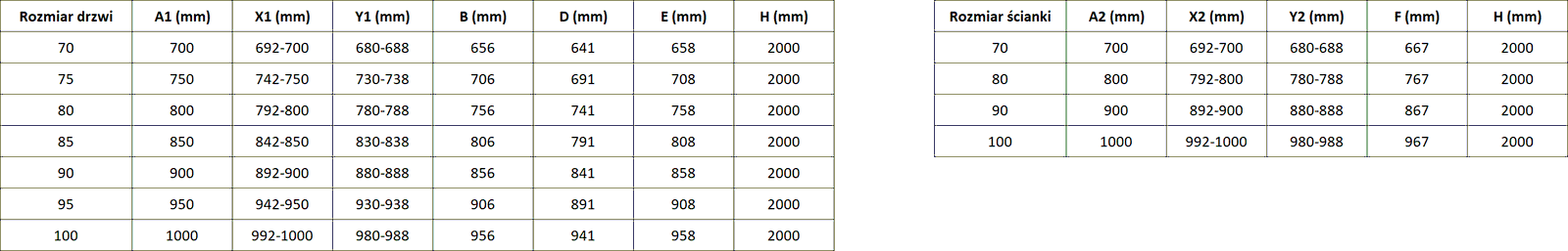 Spessore del vetro: porta 6 mm, parete 8 mm