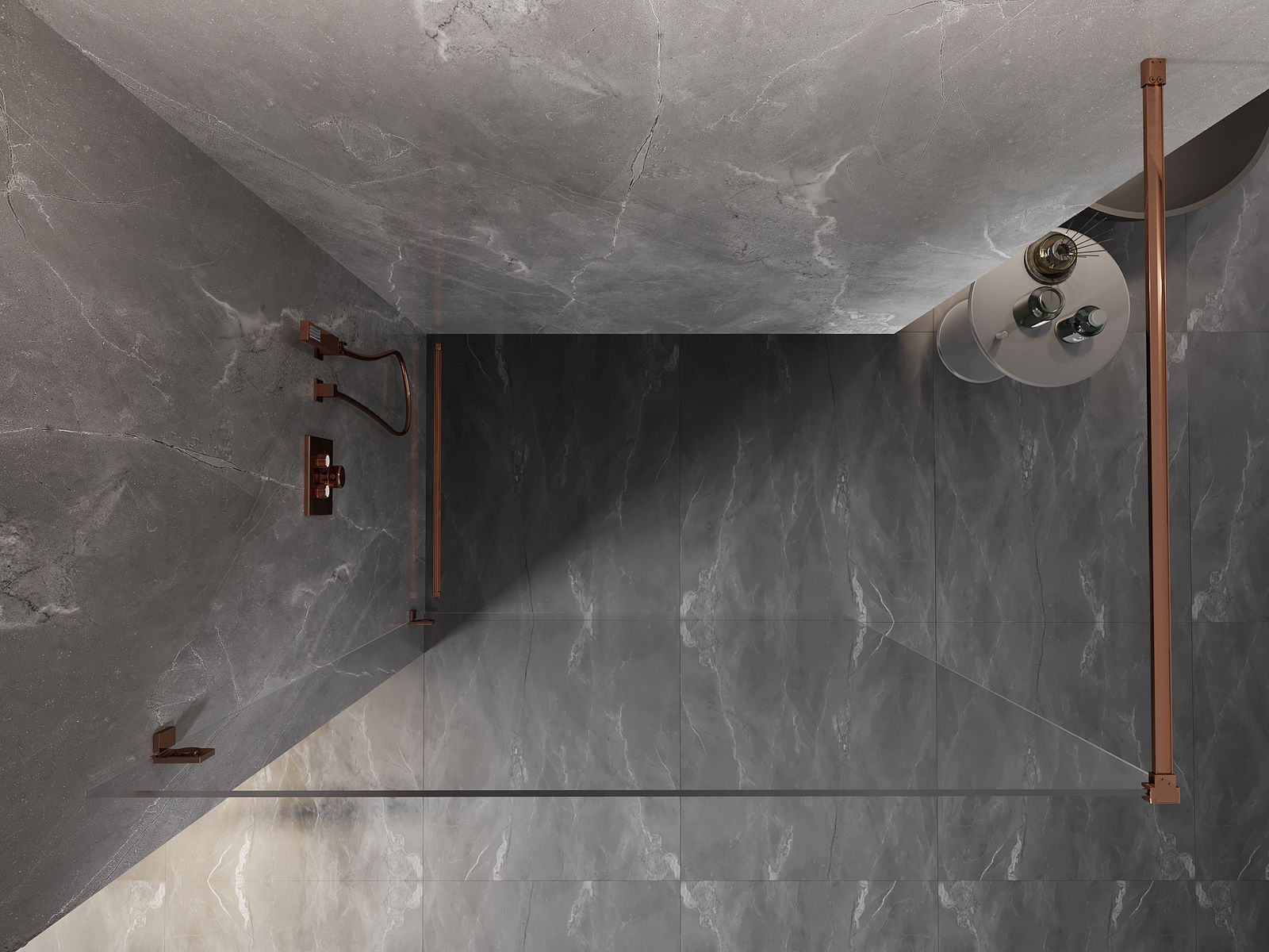 Mexen Lunar parete doccia Walk-in sinistra 50 x 200 cm, trasparente 8 mm, oro rosa - 830-050-000-60-00-L