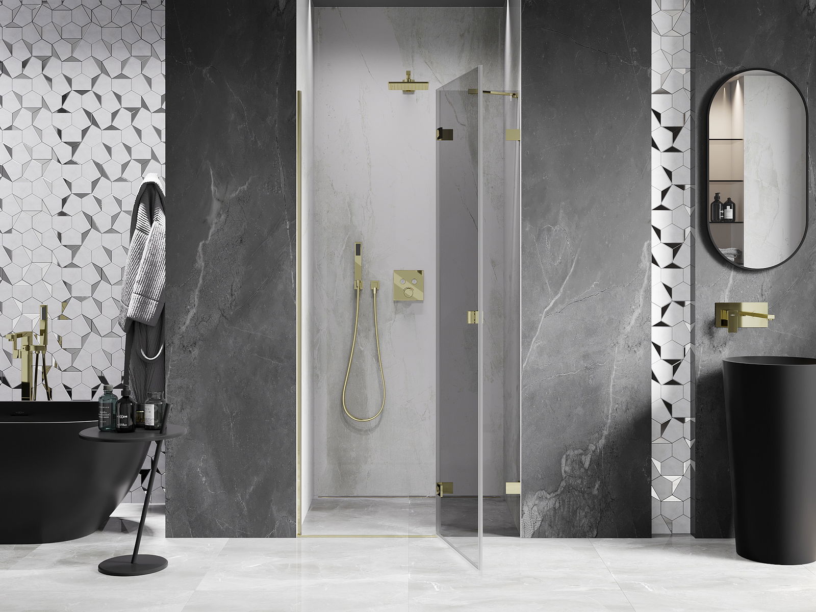Le staffe e le cerniere sono realizzate in ottone molto resistente e, inoltre, creano una superficie di vetro a filo. È un'ottima scelta che unisce eleganza, durata e design moderno. Grazie a queste soluzioni, la doccia guadagna in estetica, facilitando allo stesso tempo la pulizia.