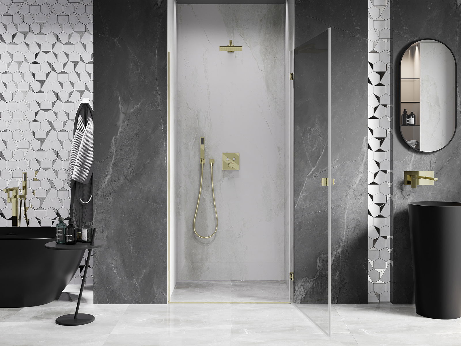 Il prodotto, a seconda delle esigenze, può essere installato sia sul piatto doccia che direttamente sul pavimento. Il metodo di installazione universale consente di adattare il prodotto a diversi tipi di bagni e configurazioni di spazio.