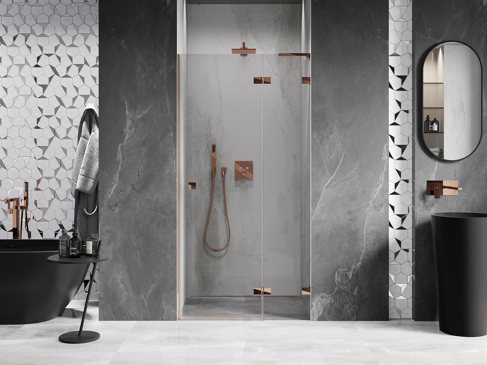 Mexen Lunar L porta doccia a battente destra 100 cm, trasparente, oro rosa - 834L-100-000-60-00-P
