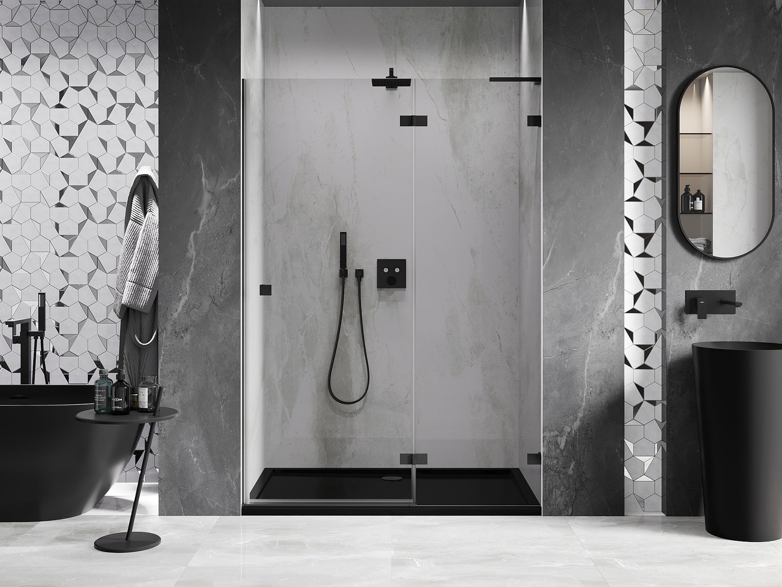 Le porte a battente offrono la massima libertà durante l'uso. Dispongono di robusti cardini realizzati in materiale durevole, che non creano difficoltà nella pulizia e consentono un facile accesso all'interno della cabina.