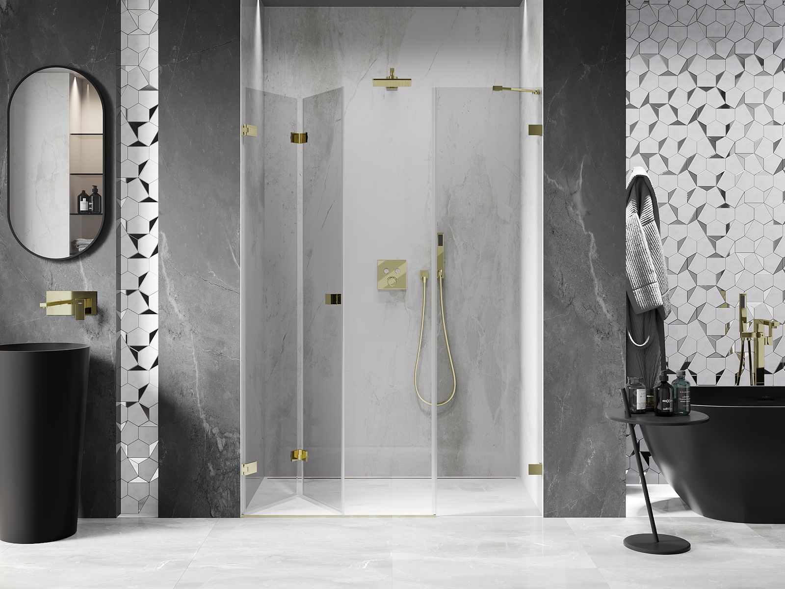 La possibilità di piegare le porte, sia verso l'esterno che verso l'interno, consente di ottenere più spazio quando la doccia non viene utilizzata. È una soluzione ideale per i bagni più piccoli, che sfrutta al massimo lo spazio disponibile.