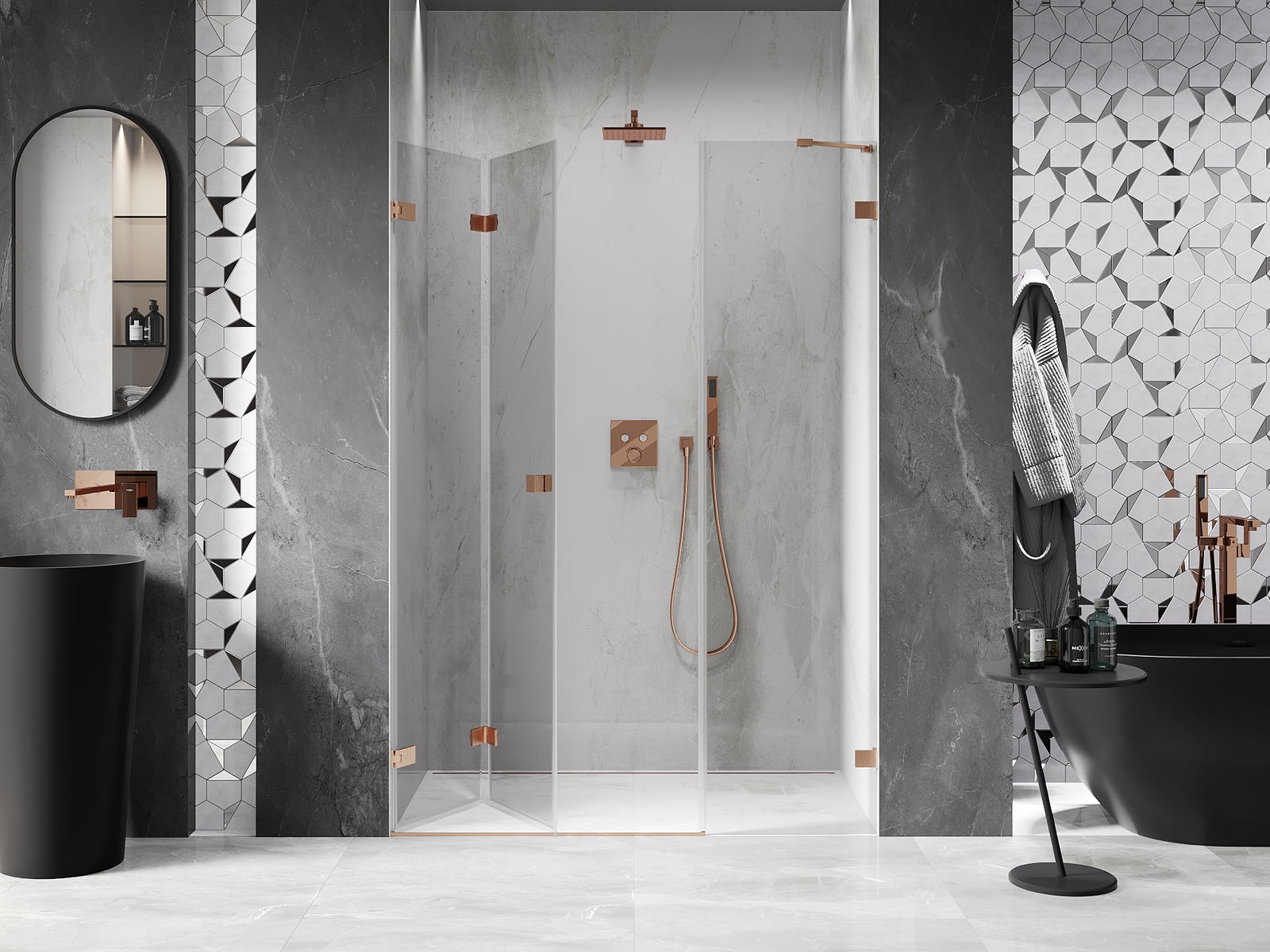 Mexen Lunar-F porta doccia pieghevole sinistra 120 cm, trasparente, rame satinato - 836S-120-050-65-00-L