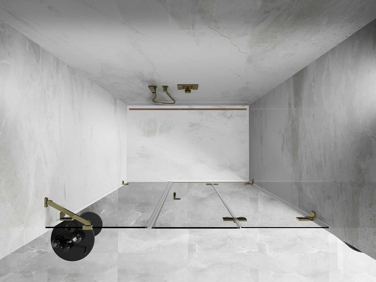 Mexen Lunar-F porta doccia pieghevole destra 140 cm, trasparente, dorata - 836S-140-050-50-00-P