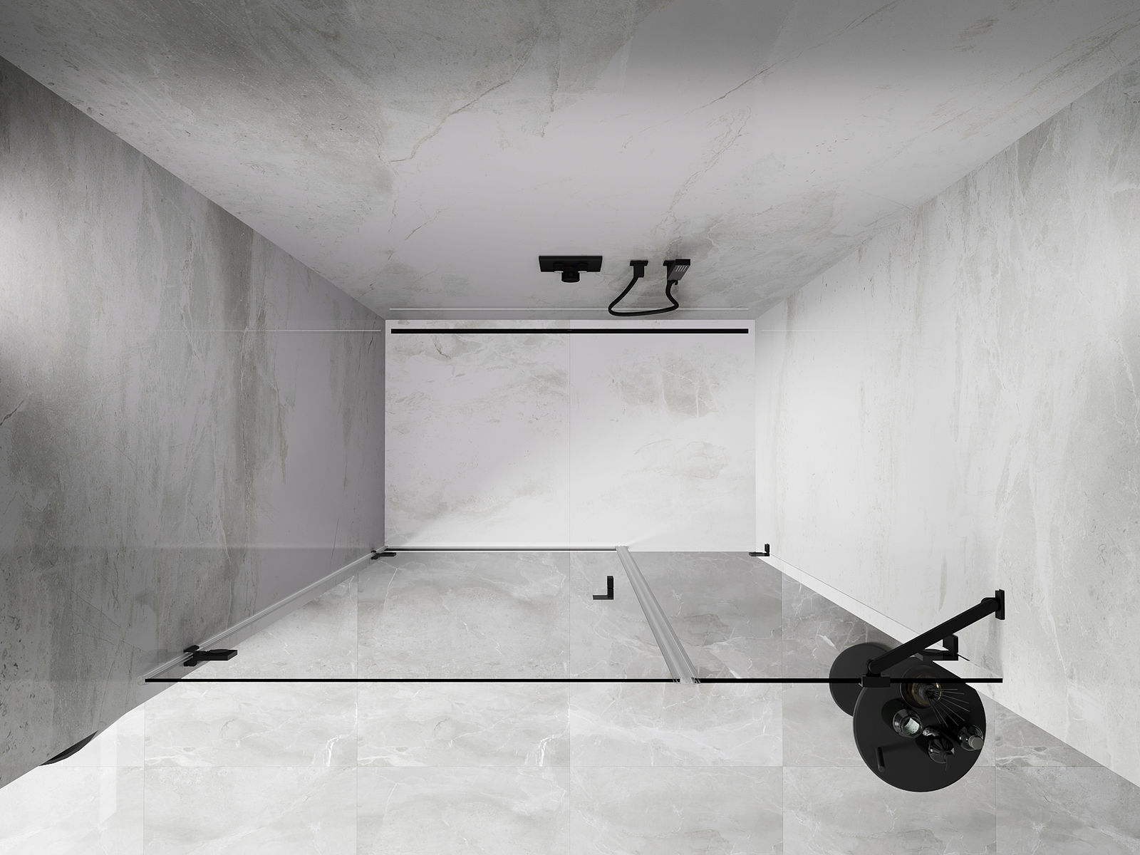 Mexen Lunar-B porta doccia a battente sinistra 135 cm, trasparente, nero - 832S-135-050-70-00-L