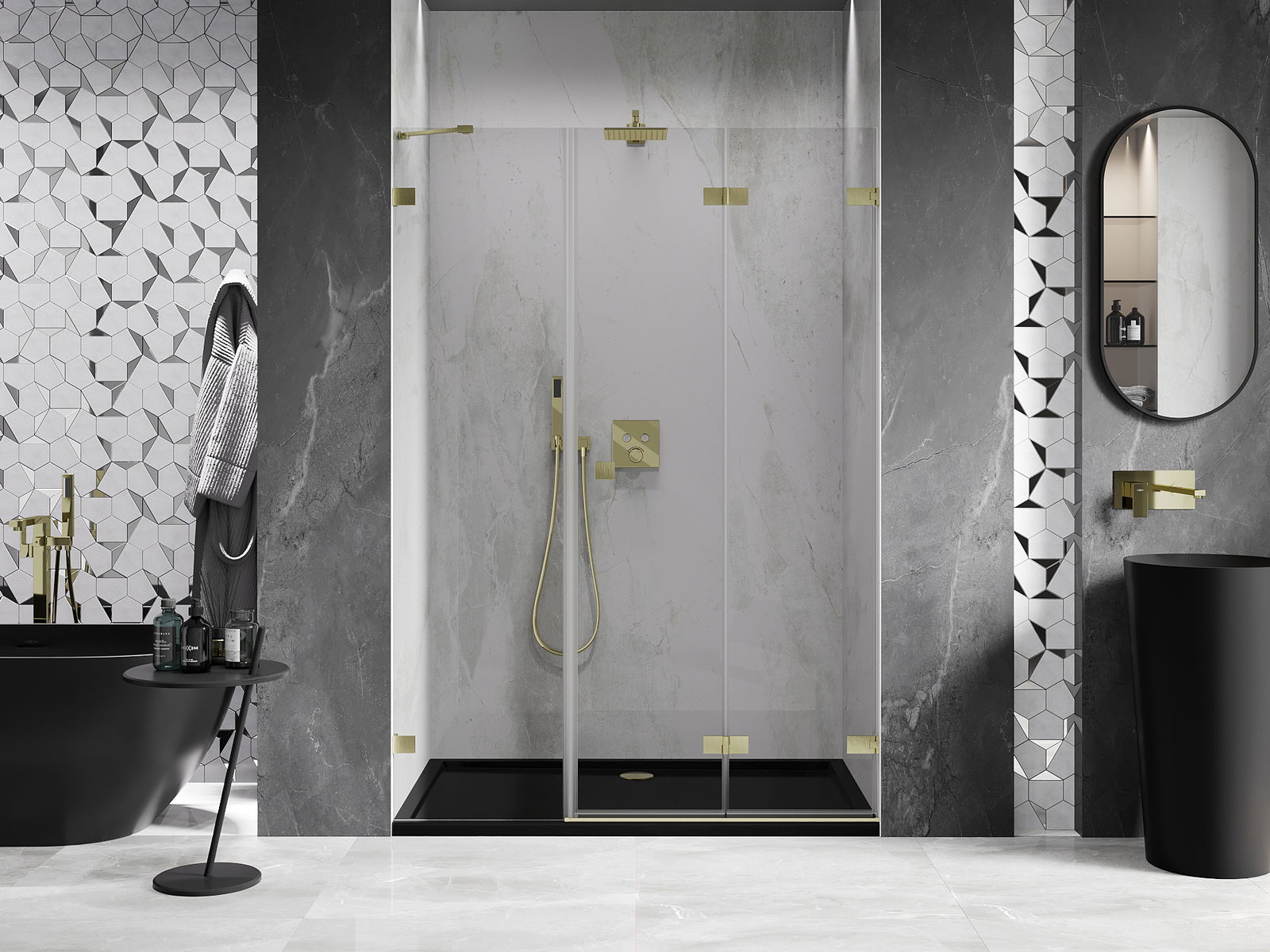 La possibilità di piegare le porte, sia verso l'esterno che verso l'interno, consente di ottenere più spazio quando la doccia non viene utilizzata. È una soluzione ideale per i bagni più piccoli, che sfrutta al massimo lo spazio disponibile.