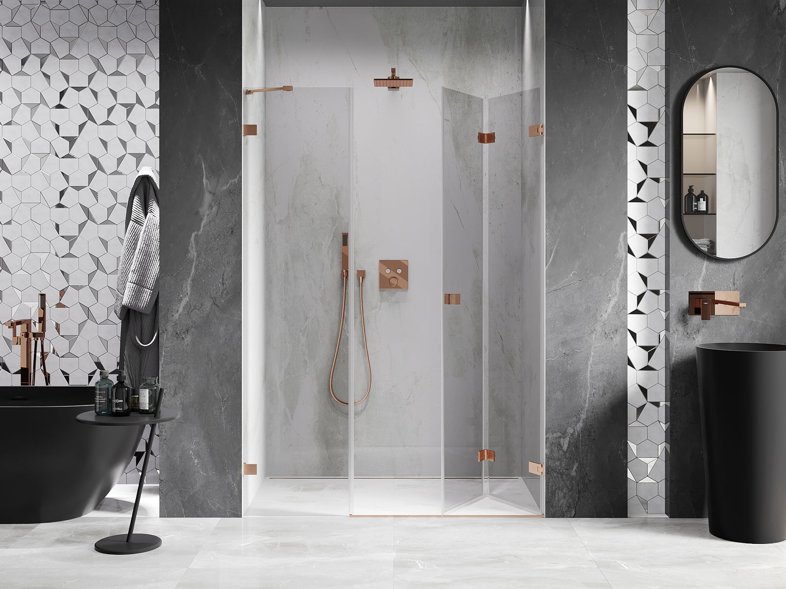 Mexen Lunar-F porte doccia pieghevoli destre 140 cm, trasparente, rame spazzolato - 836S-140-050-65-00-P