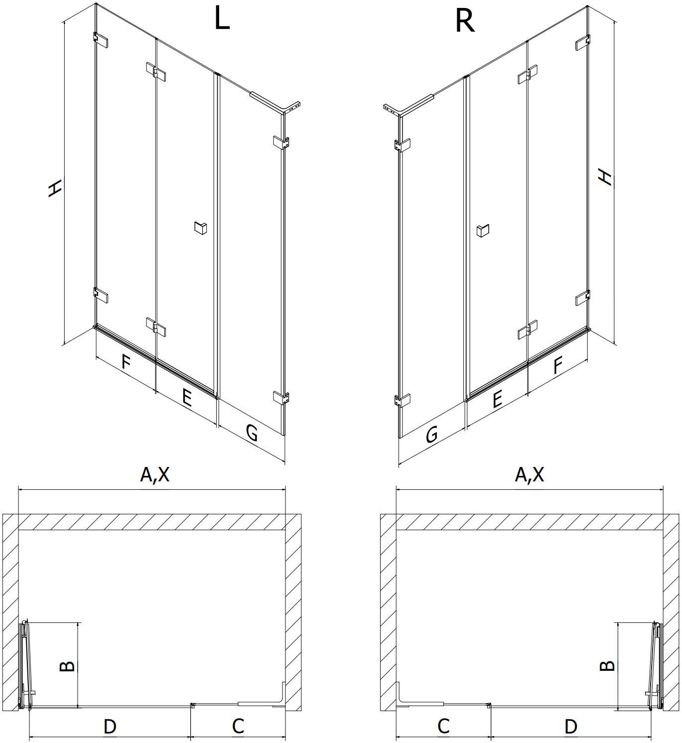 La possibilità di piegare le porte, sia verso l'esterno che verso l'interno, consente di ottenere più spazio quando la doccia non viene utilizzata. È una soluzione ideale per i bagni più piccoli, che sfrutta al massimo lo spazio disponibile.