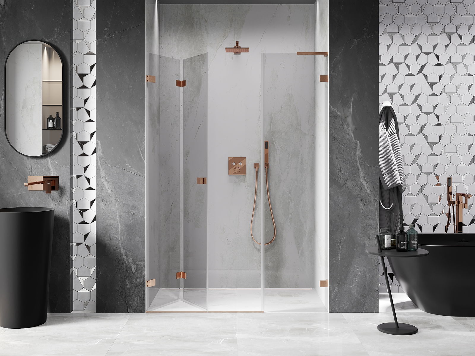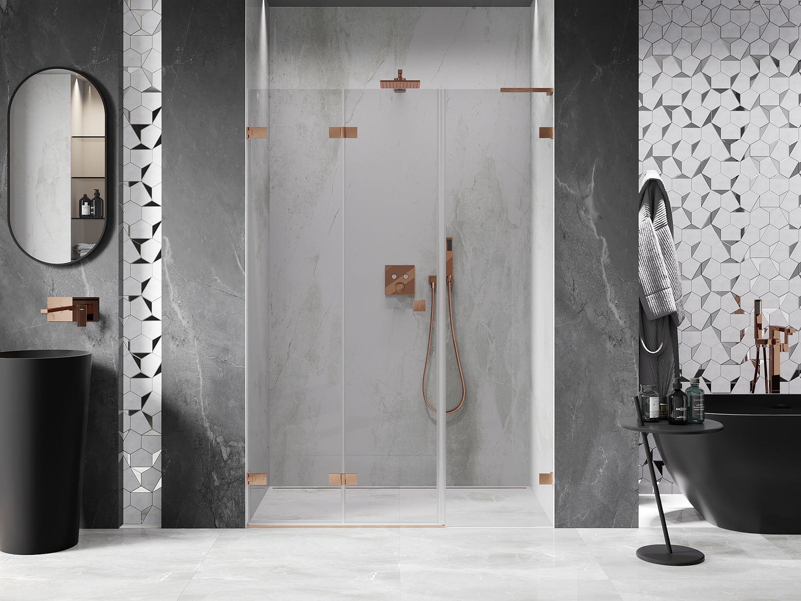 Mexen Lunar-F L porta doccia pieghevole sinistra 145 cm, trasparente, rame spazzolato - 836SL-145-050-65-00-L