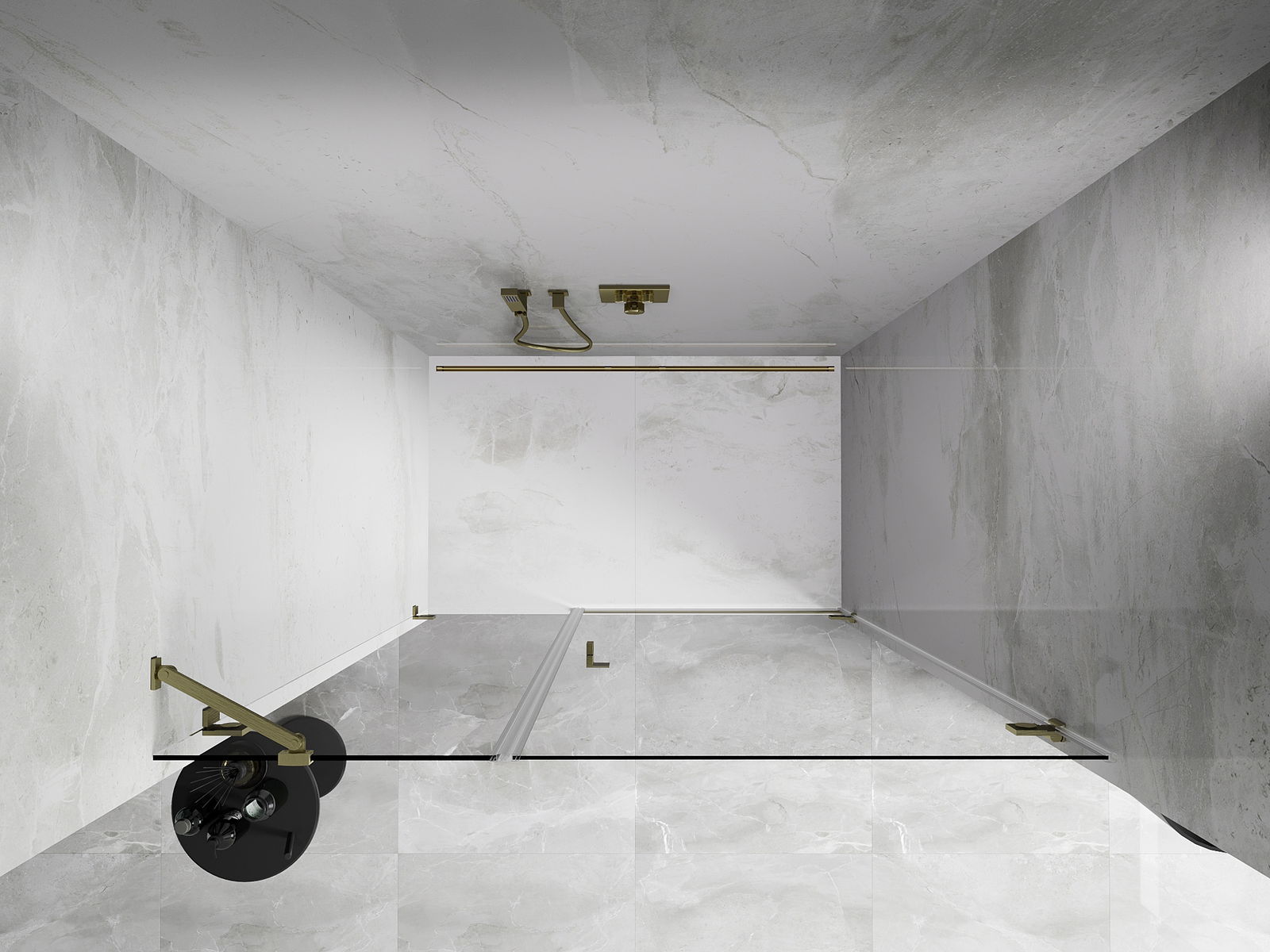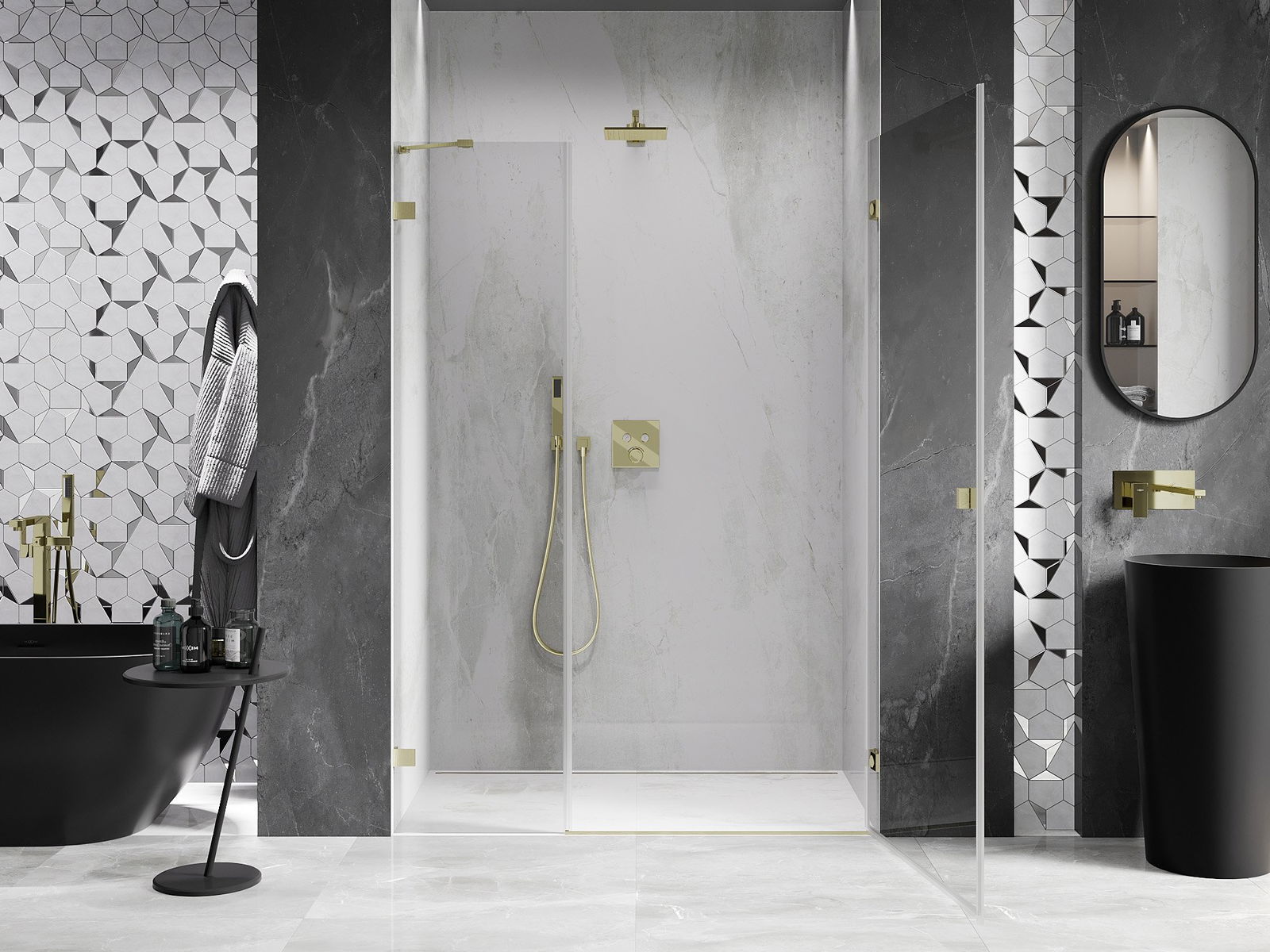 Mexen Lunar-B porta doccia a battente destra 130 cm, trasparente, oro spazzolato - 832S-130-050-55-00-P
