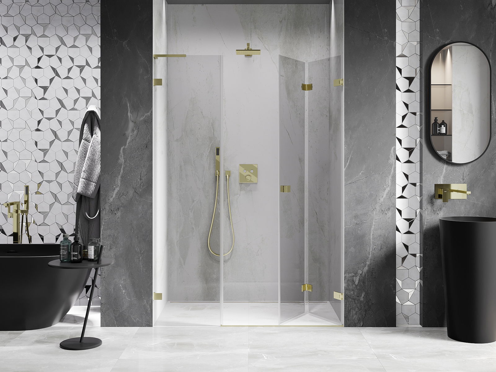 Mexen Lunar-F L porta doccia pieghevole destra 140 cm, trasparente, oro spazzolato - 836SL-140-050-55-00-P