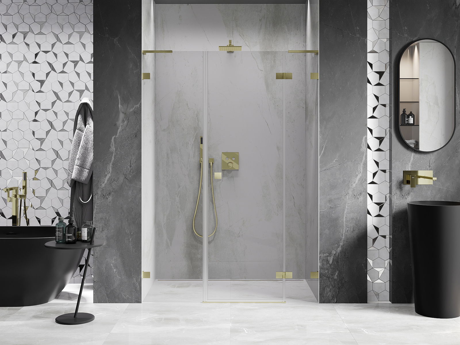 Mexen Lunar L porta doccia a battente destra 130 cm, trasparente, oro spazzolato - 834SL-130-050-55-00-P